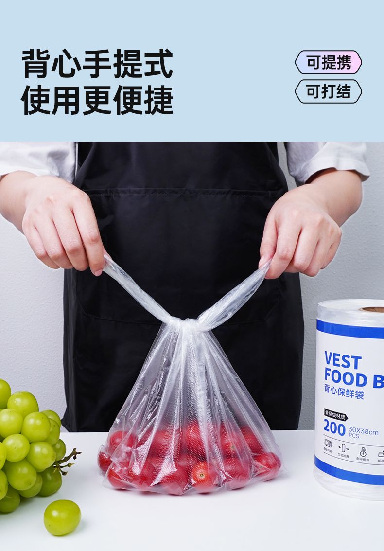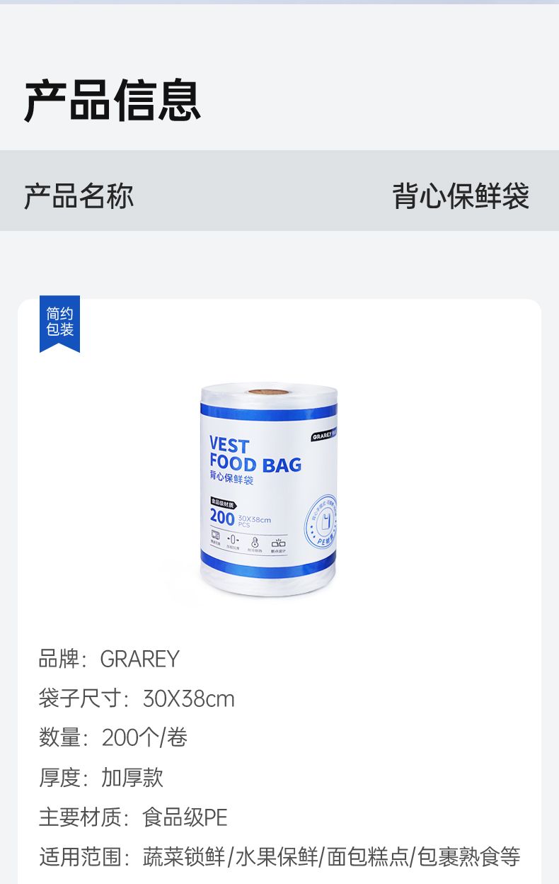 商品名称:格瑞亚背心保鲜袋 200只/卷*2卷 中号:30x38cm