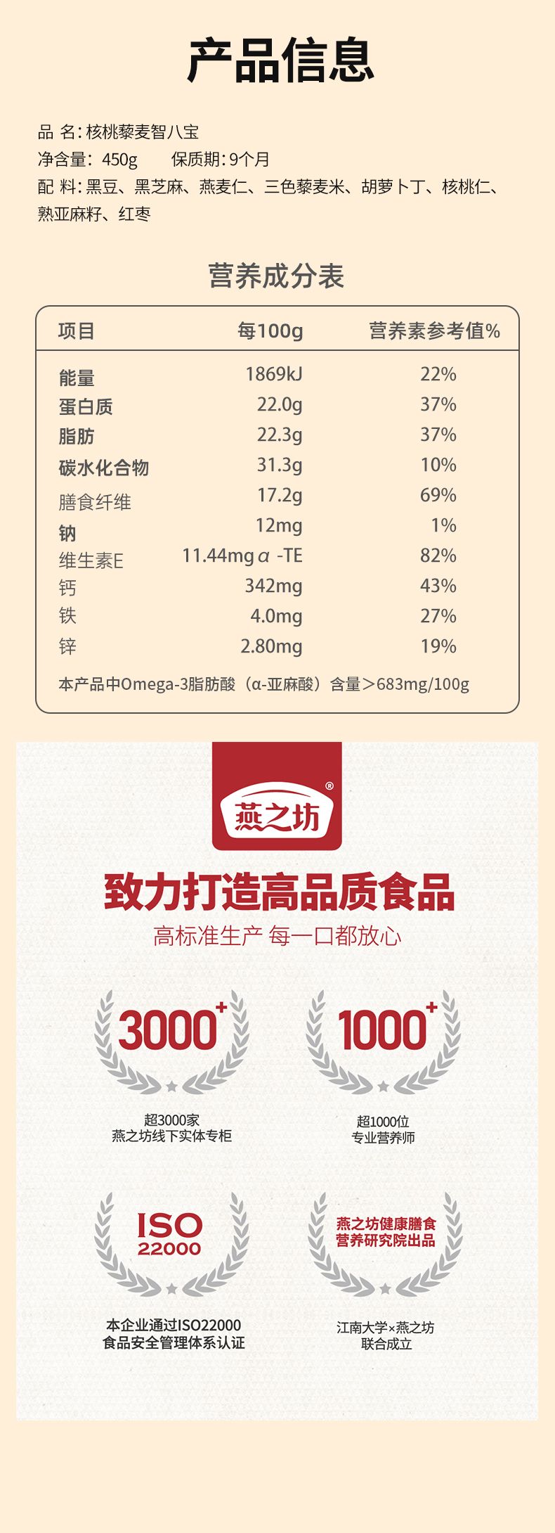 商品名称:燕之坊核桃藜麦智八宝450g
