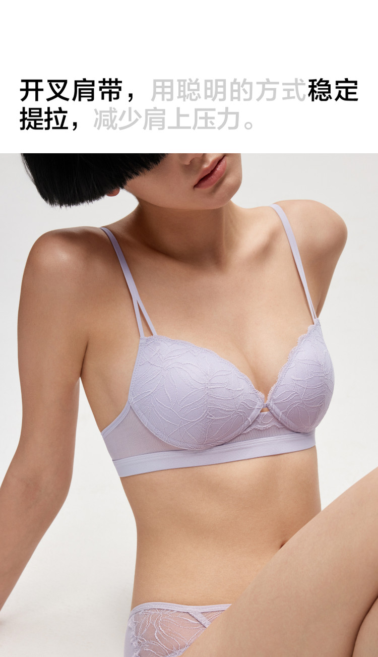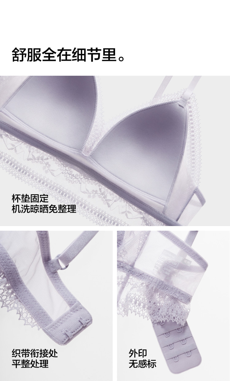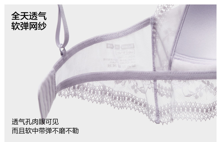 商品名称:303A无痕美背内衣薄款蕾丝性感文胸法式三角杯大胸显小胸罩 624261