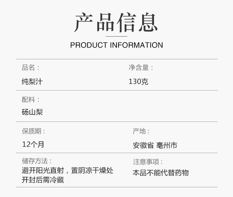 商品名称:【7斤梨熬一支】御药济仁 纯梨汁130g/支