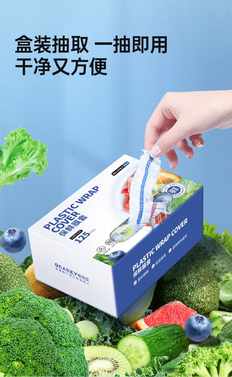 商品名称:格瑞亚保鲜膜套-盒装 125只/盒 *4
