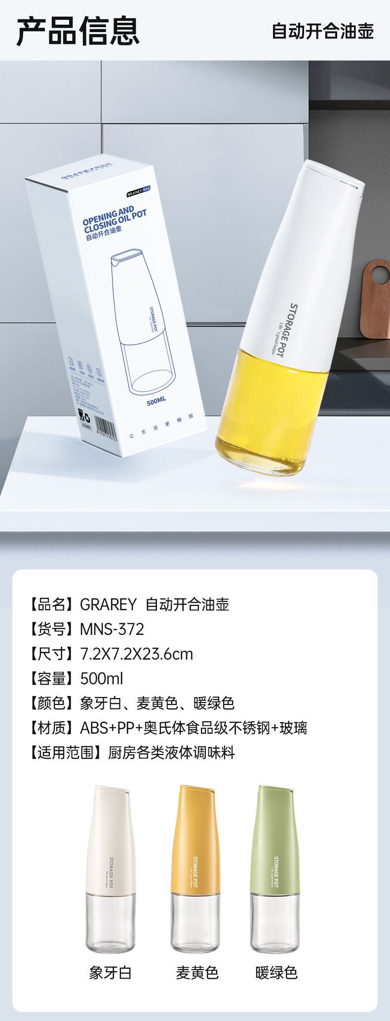 商品名称:格瑞亚自动开合油壶 500ml *2个