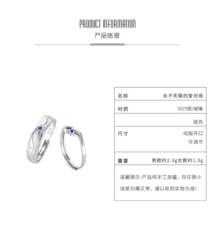 商品名称:【情侣礼物】岁月静好925纯银对戒永不失联情侣戒礼盒礼物 000769