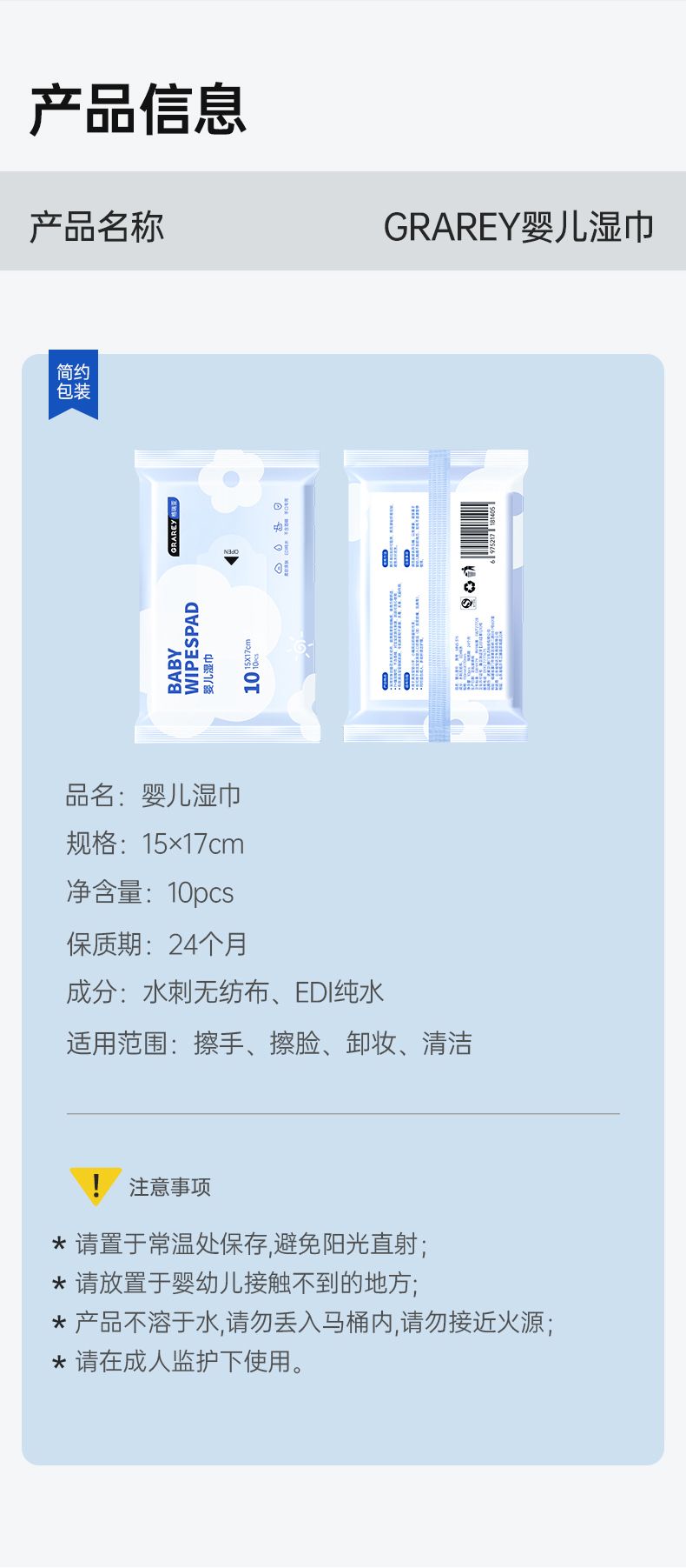 商品名称:格瑞亚婴儿湿巾1箱 15x17cm