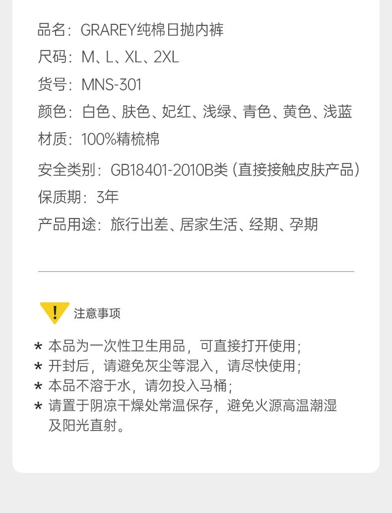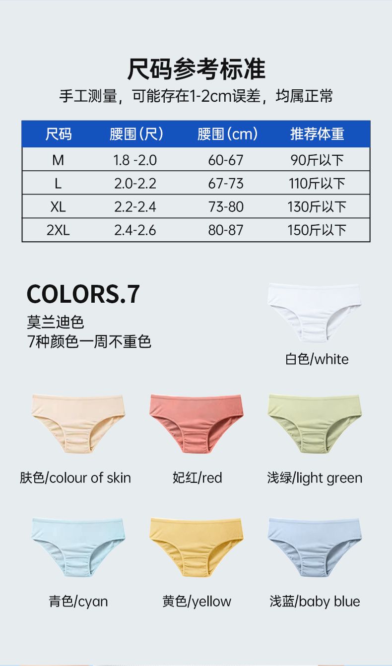 商品名称:格瑞亚(女款)纯棉日抛内裤7条
