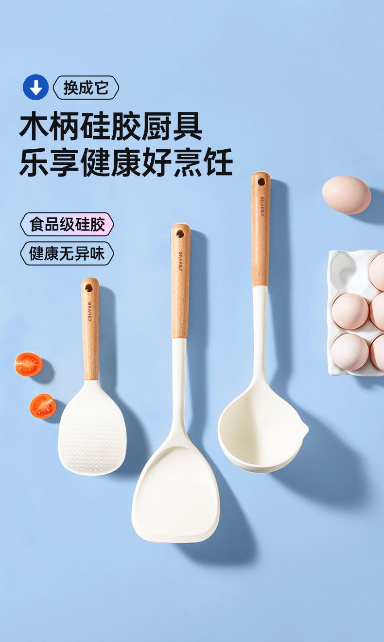格瑞亚木柄锅铲三件套(锅铲+大汤勺+饭勺)