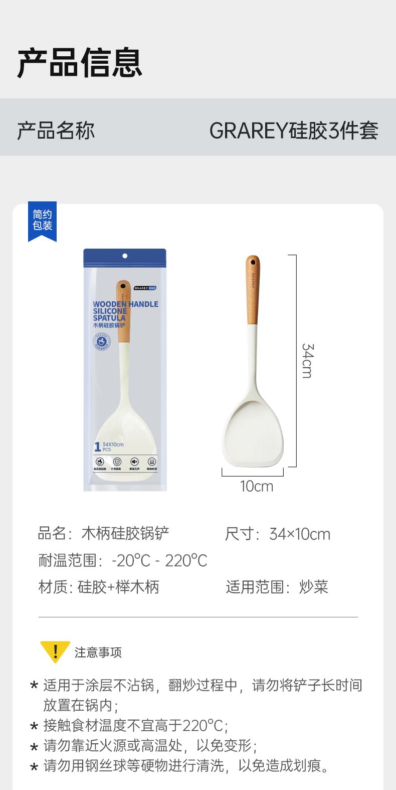 商品名称:格瑞亚木柄锅铲三件套(锅铲+大汤勺+饭勺)