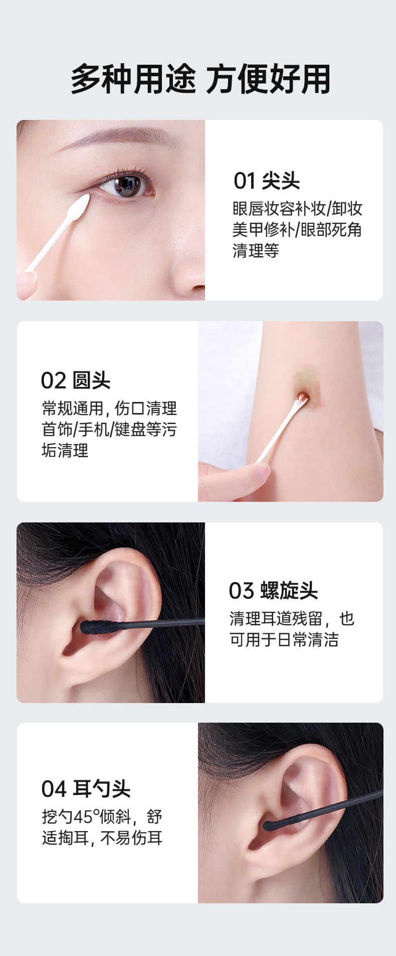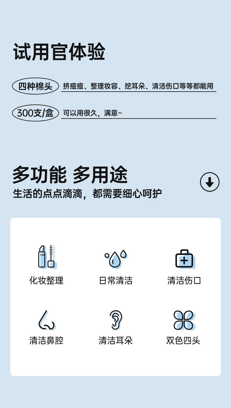 (多效棉签2盒+婴童棉签2盒)共1000支