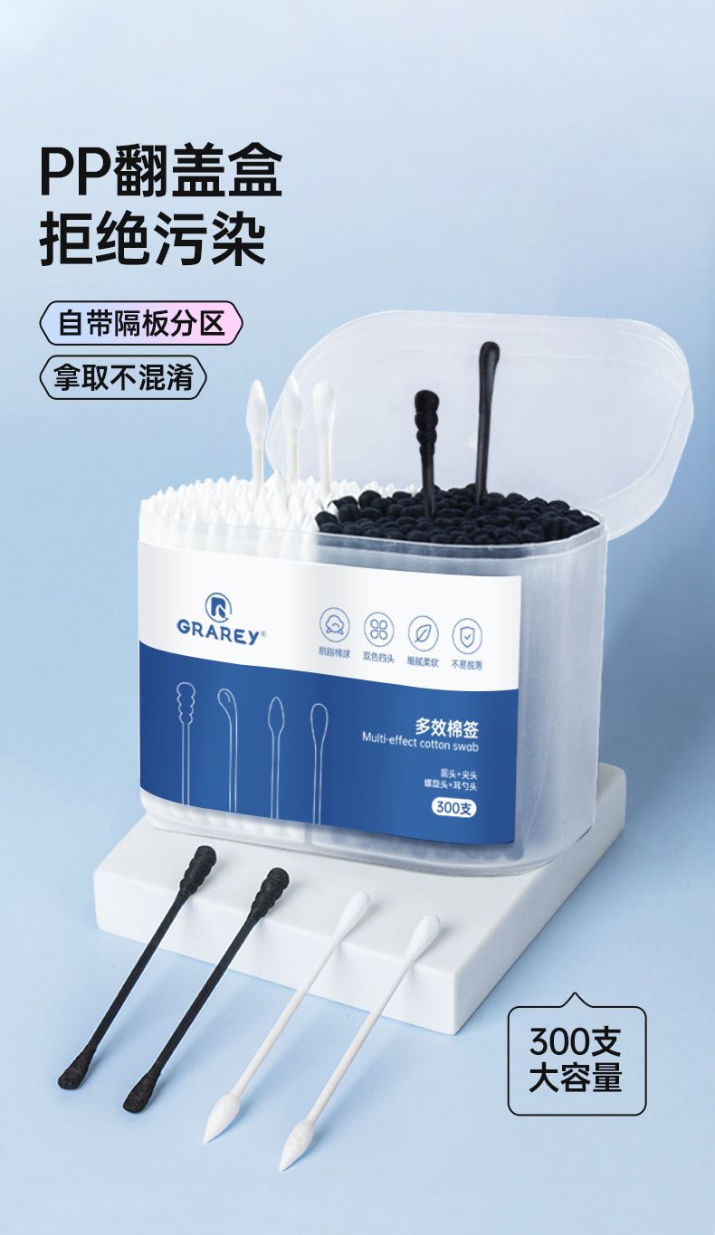 商品名称:格瑞亚亲子套装(多效棉签2盒+婴童棉签2盒)共1000支