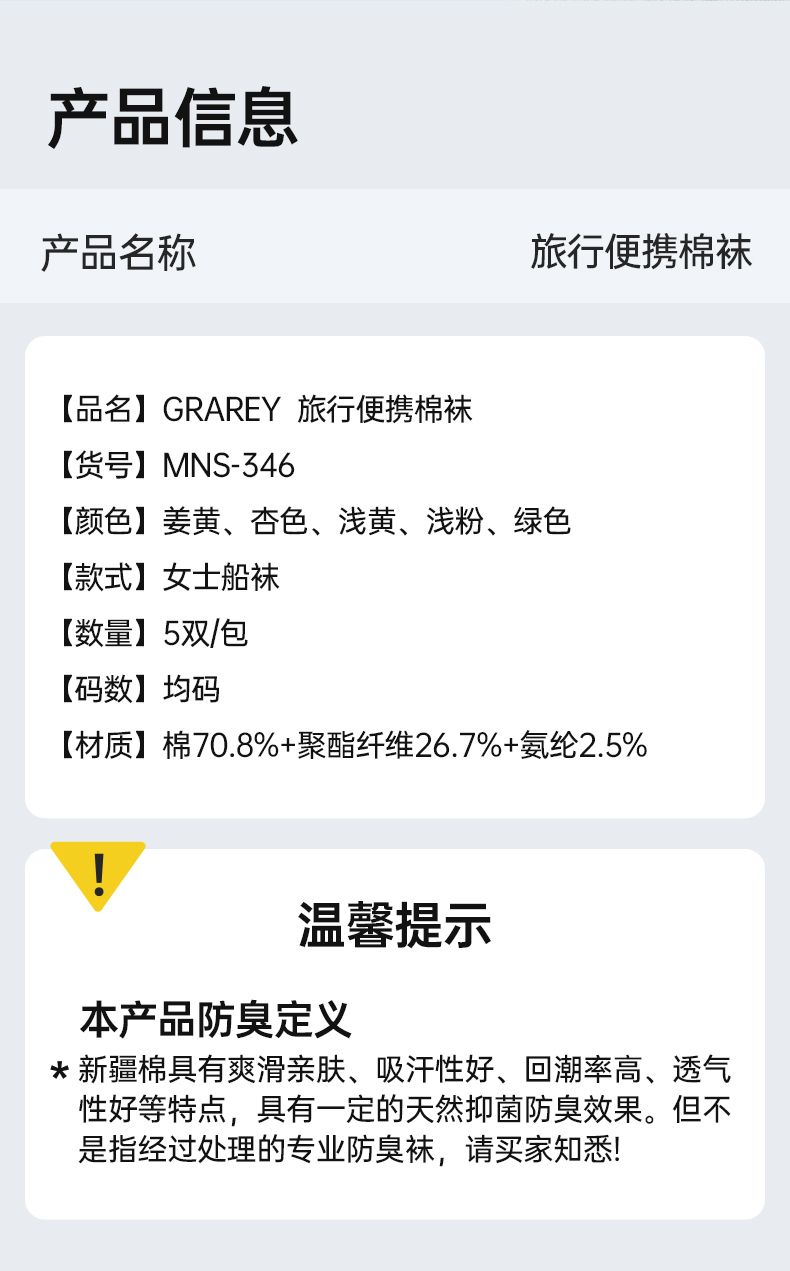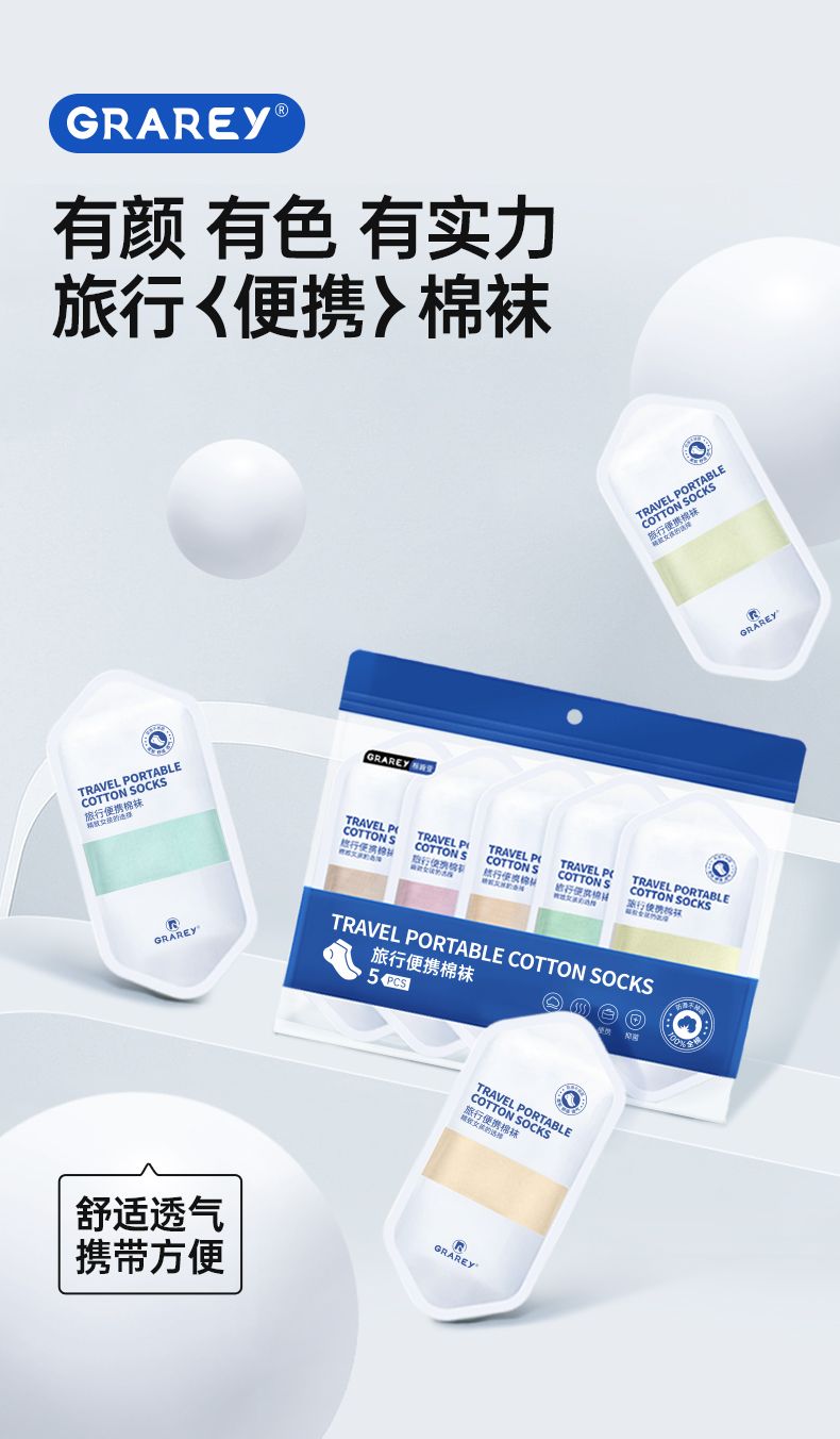 商品名称:格瑞亚旅行便携棉袜 1包5双*2包