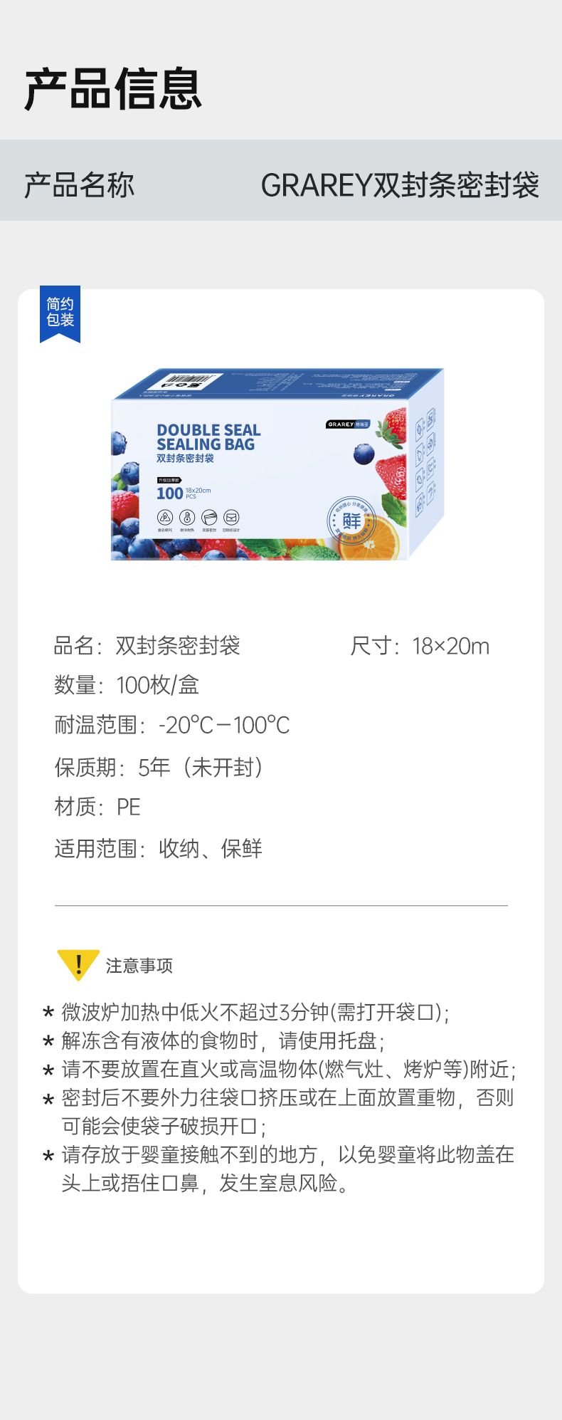 商品名称:格瑞亚双封条密封袋 100只/盒 *2盒