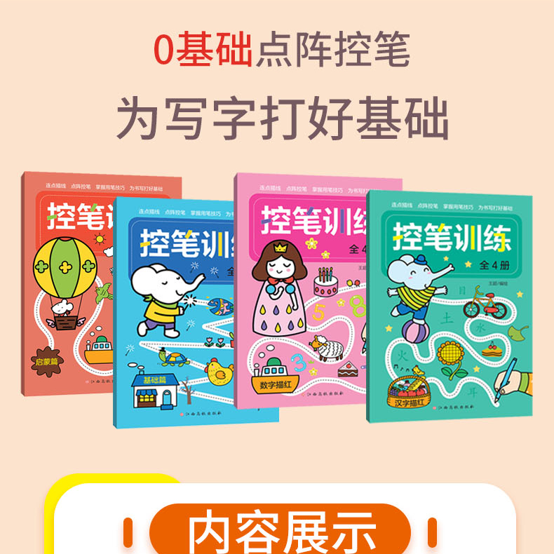 控笔训练全4册3-6岁图形线条笔画汉字数字描红幼小衔接入学准备