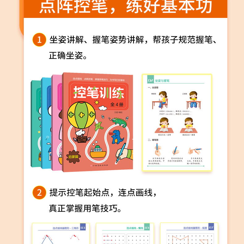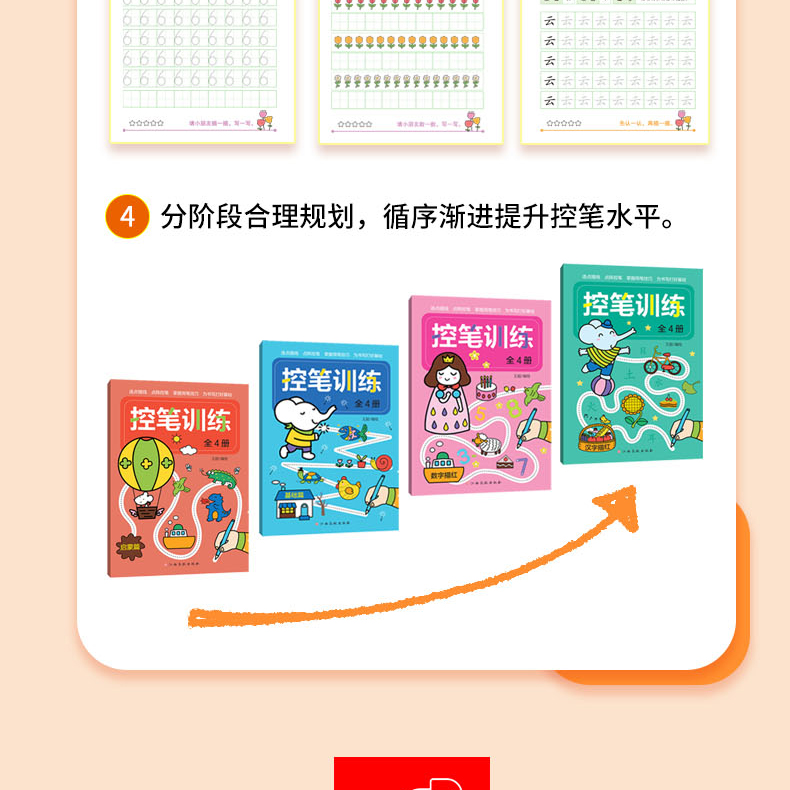 商品名称:控笔训练全4册3-6岁图形线条笔画汉字数字描红幼小衔接入学准备