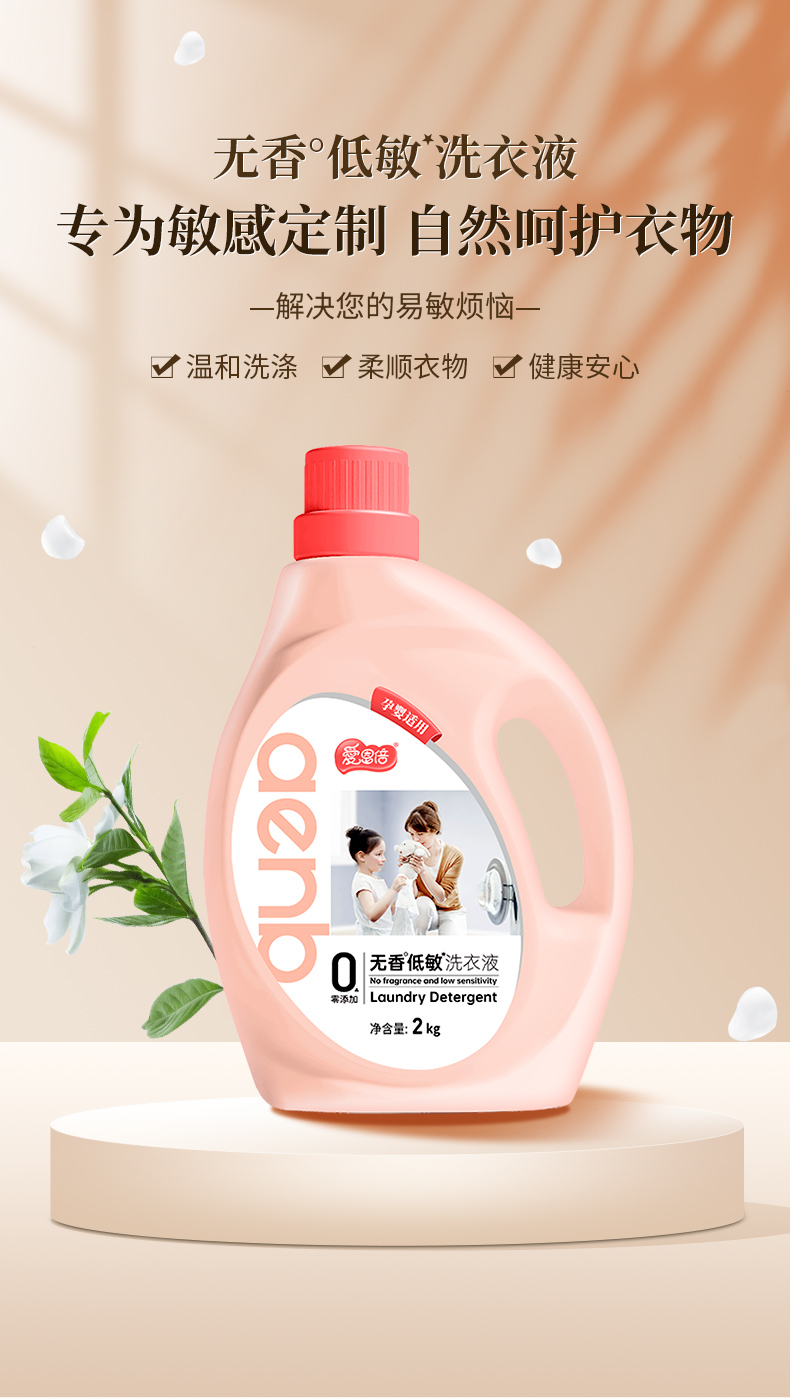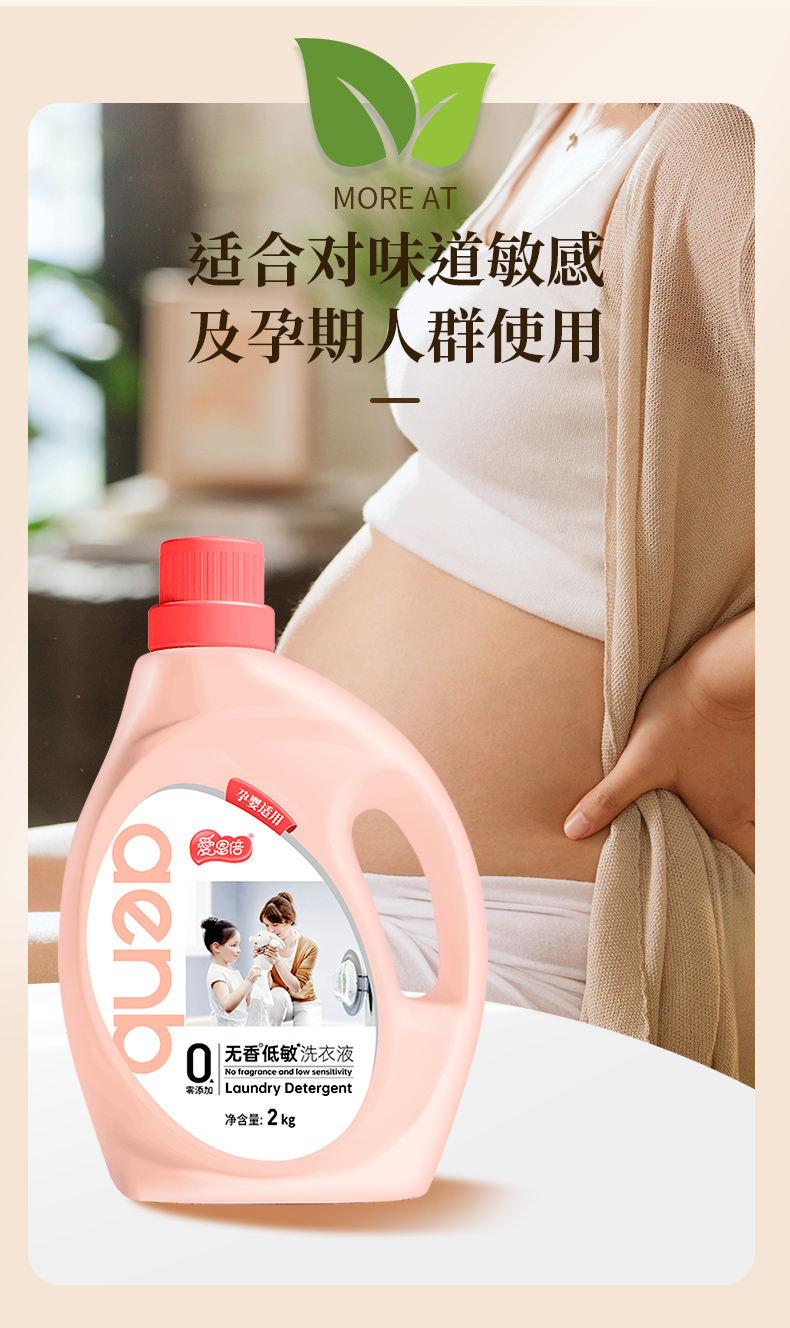 爱恩倍无香洗衣液低敏无添加婴儿孕妇专用深层洁净家用实惠去污渍2KG桶装