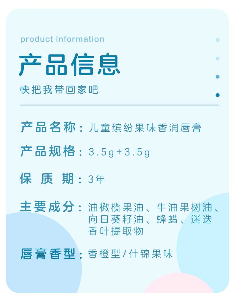 商品名称:【品牌直供】小浣熊儿童润唇膏2支装 滋润保湿缤纷果味3.5g