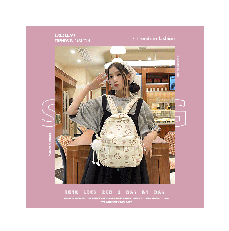 商品名称:彤彤兔 可爱小熊书包女初中生外出旅游小背包轻便韩版高中大学生双肩包
