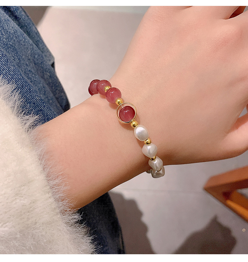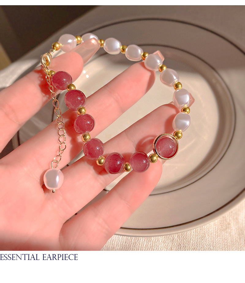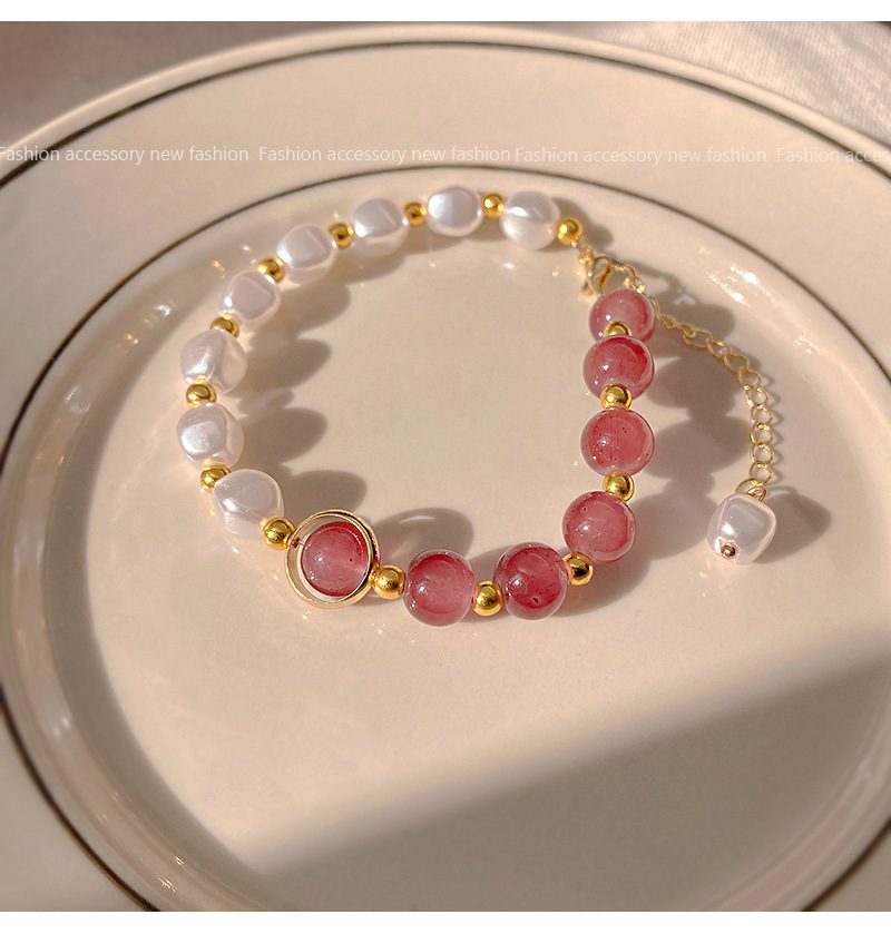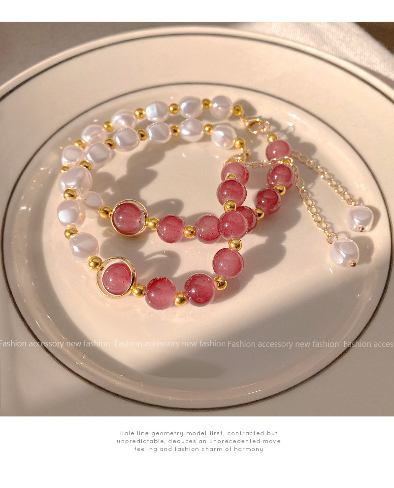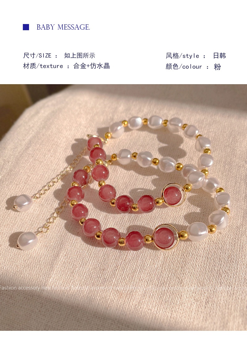 商品名称:彤彤兔 草莓晶拼接手链仿珍珠个性时尚学生手饰闺蜜气质简约串珠小众配饰