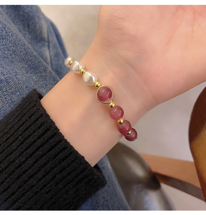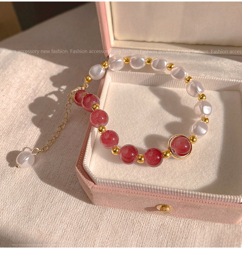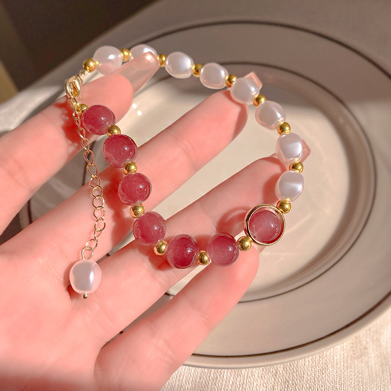 彤彤兔 草莓晶拼接手链仿珍珠个性时尚学生手饰闺蜜气质简约串珠小众配饰