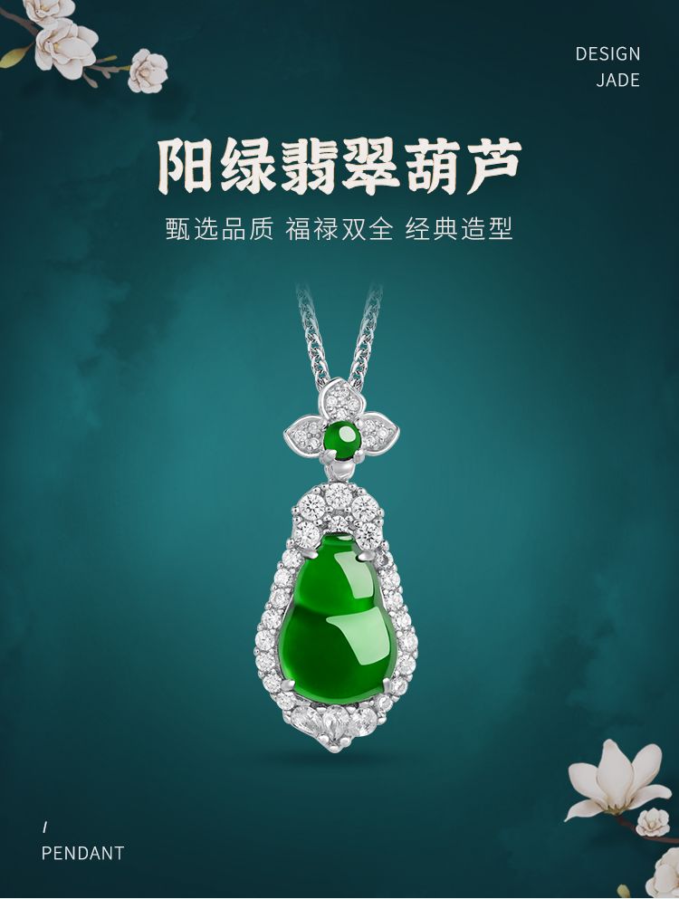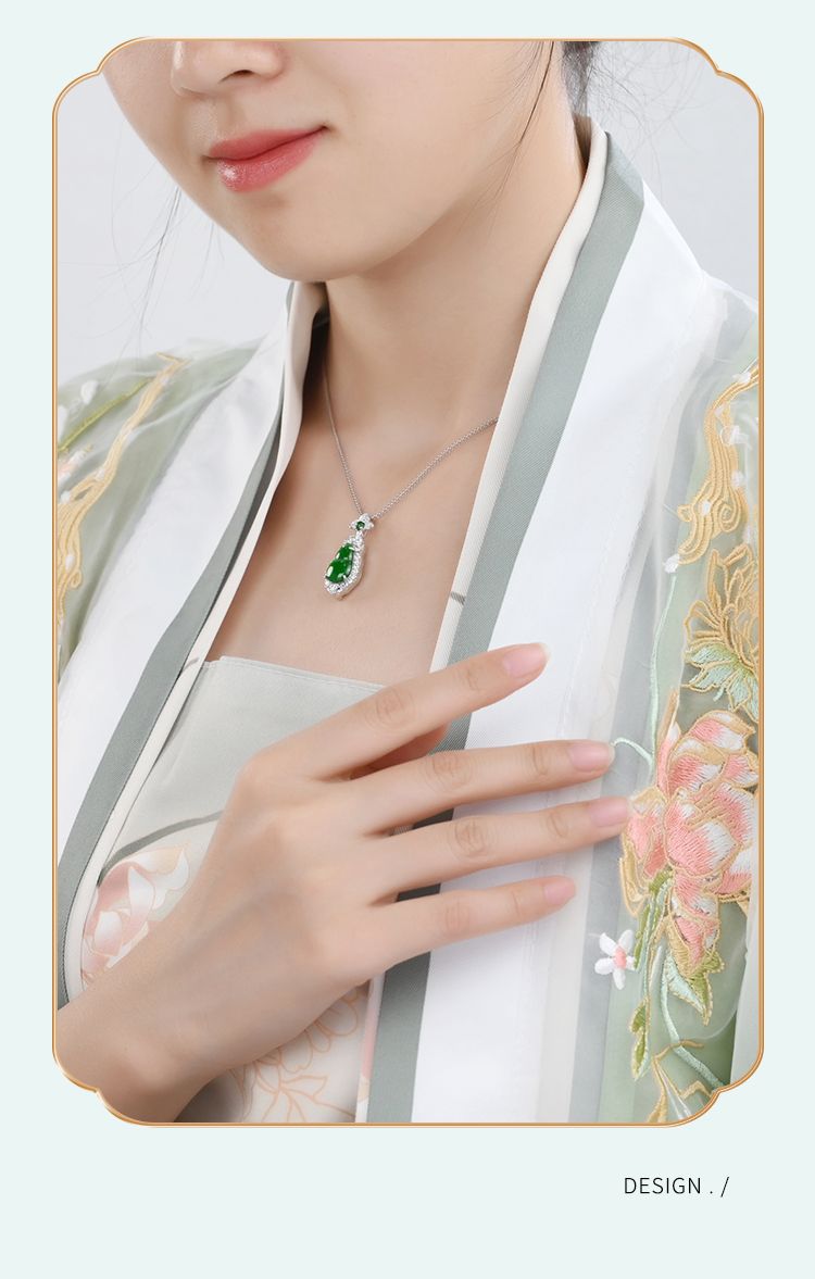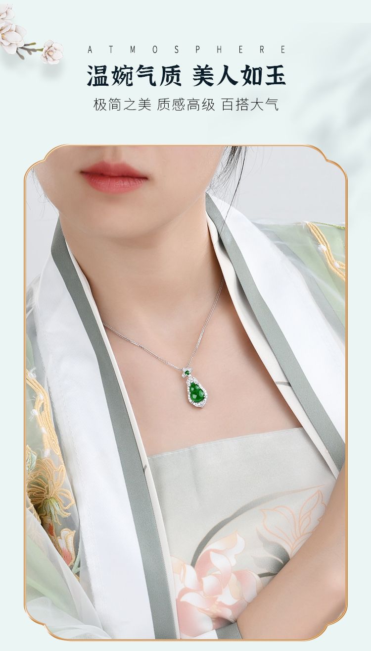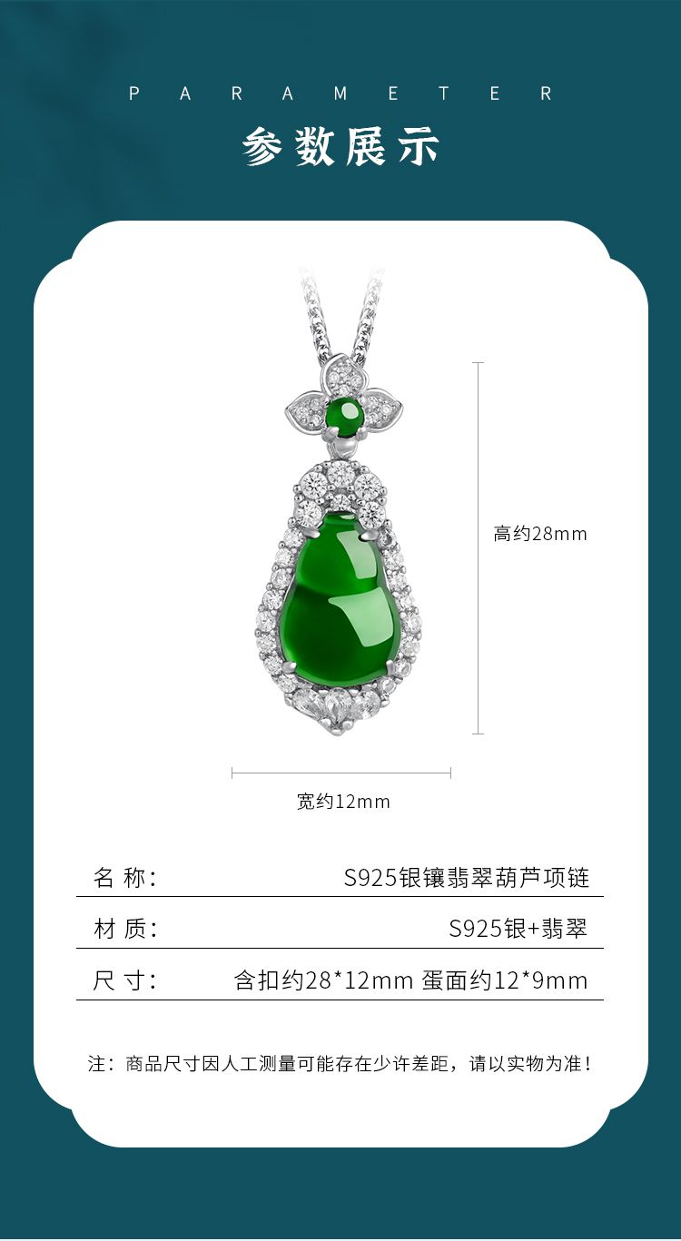 商品名称:紫慕璃 新中式满镶福禄 阳绿葫芦 糯冰 翡翠项链 女款