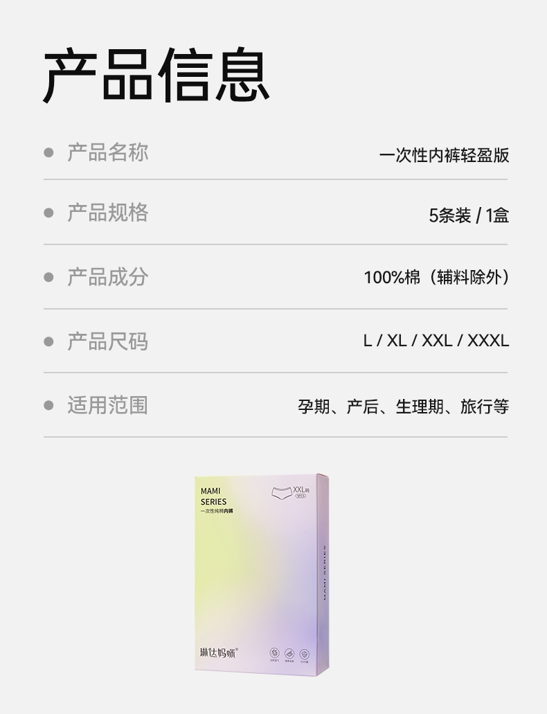 商品名称:【小红书好物推荐】琳达妈咪5条孕妇产妇一次性内裤纯棉正品产后月子女大码旅行短裤