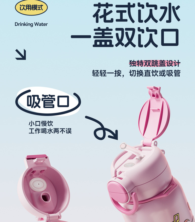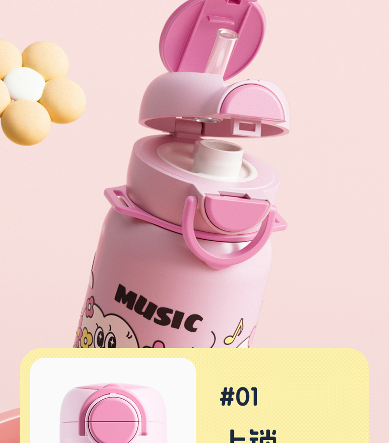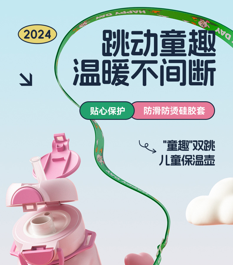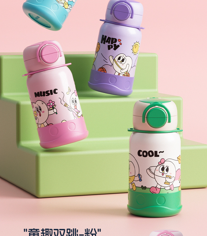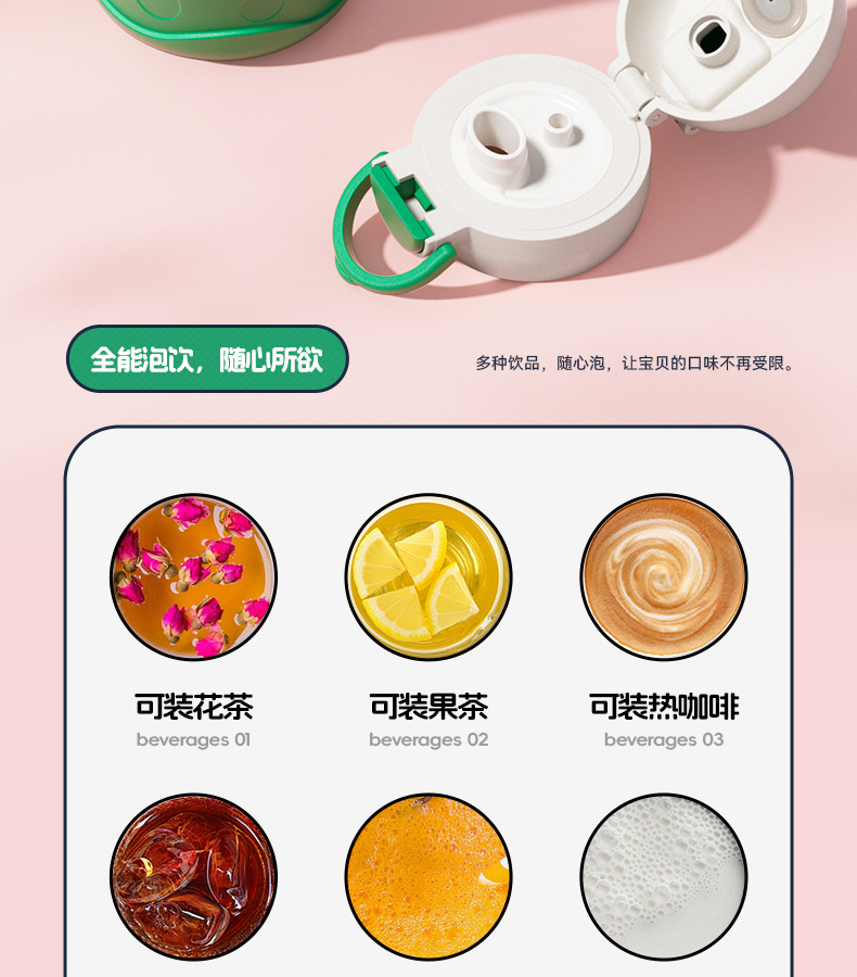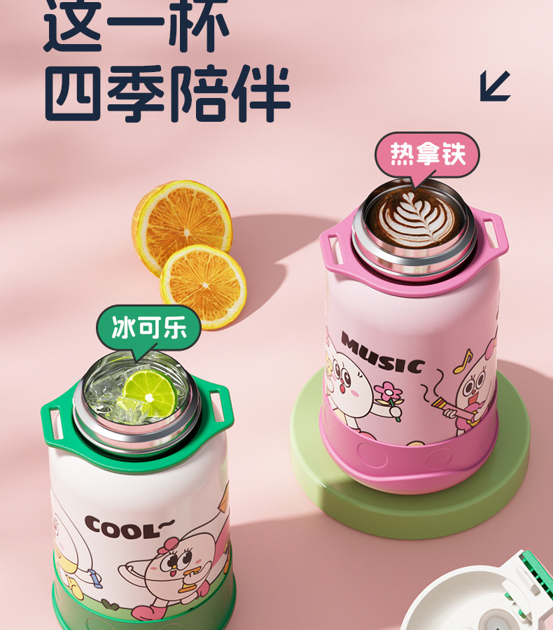 商品名称:秋冬新款高颜值婴幼儿保温杯316便携背绳带防摔杯套吸管双饮儿童壶大容量保温壶