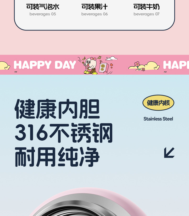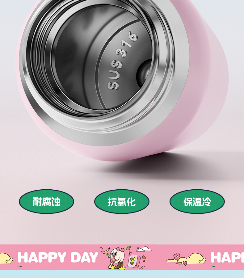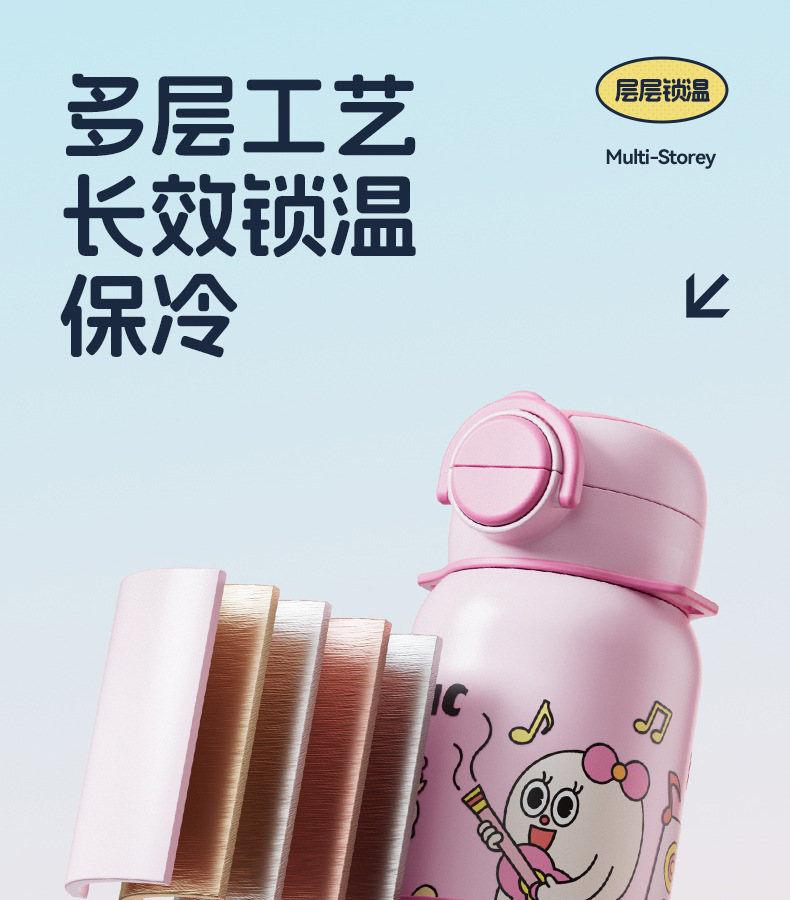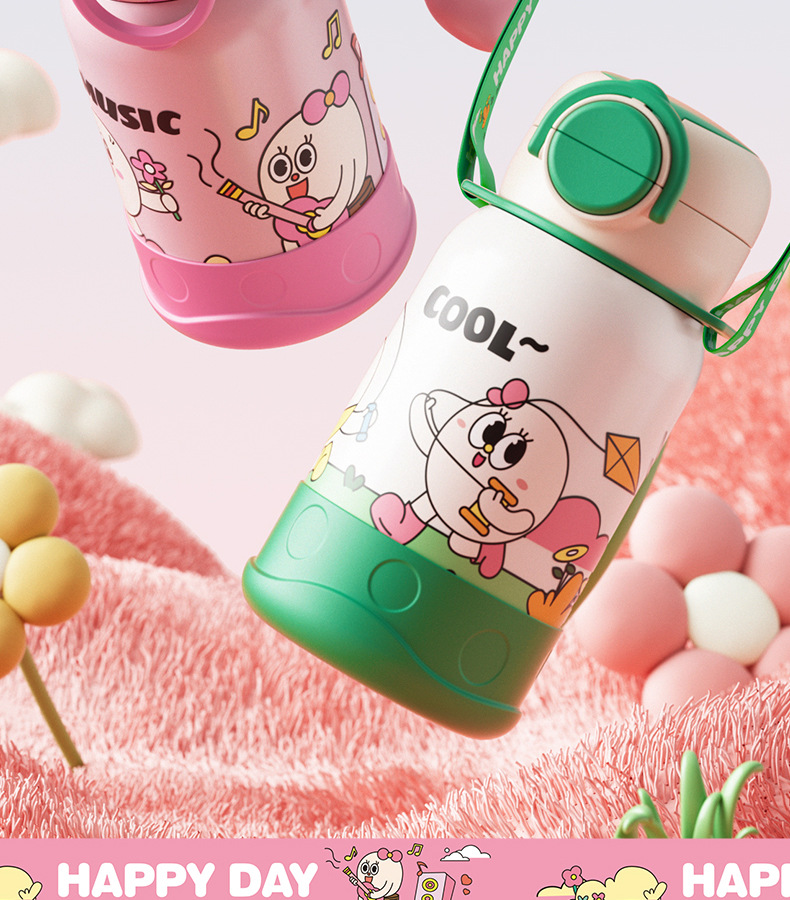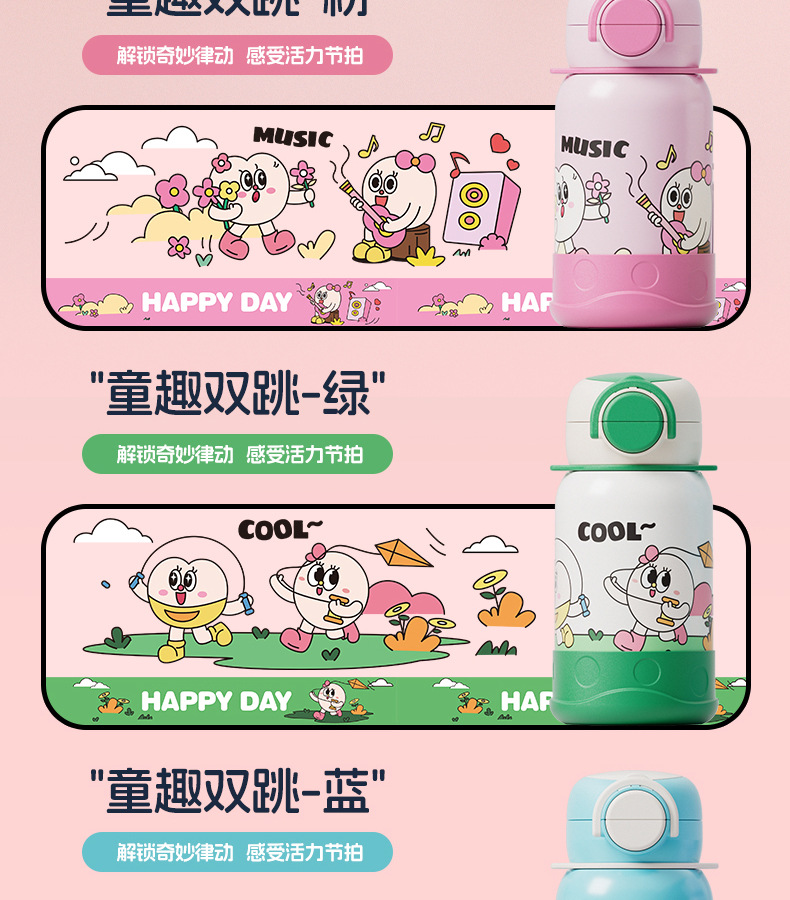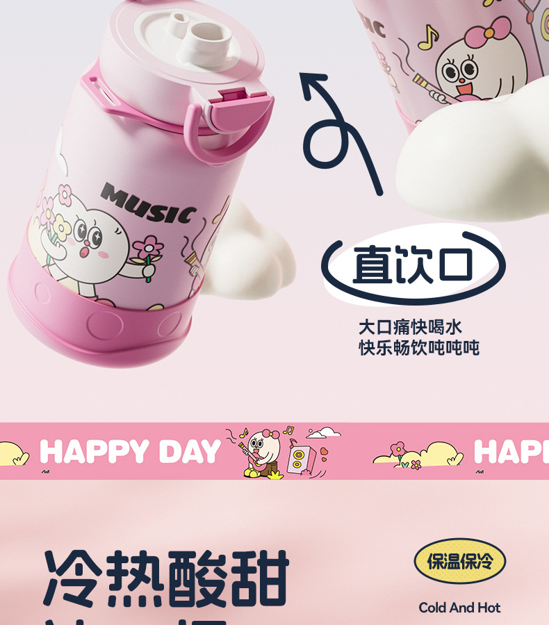 商品名称:秋冬新款高颜值婴幼儿保温杯316便携背绳带防摔杯套吸管双饮儿童壶大容量保温壶