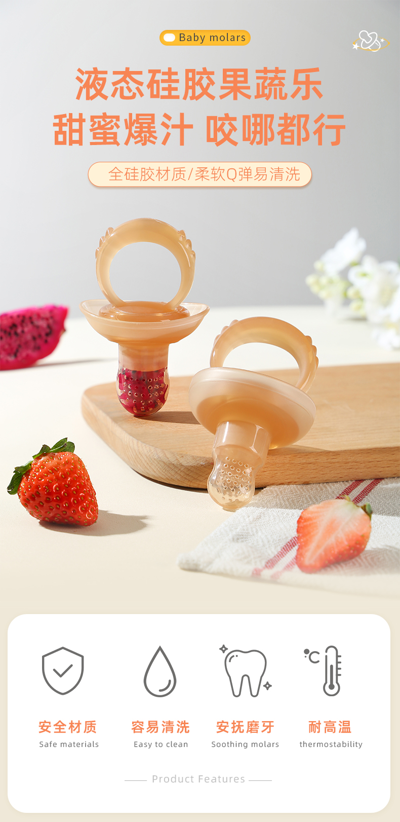 商品名称:儿童食品级硅胶咬咬乐辅食水果果蔬牙胶宝宝安抚奶嘴婴儿用品