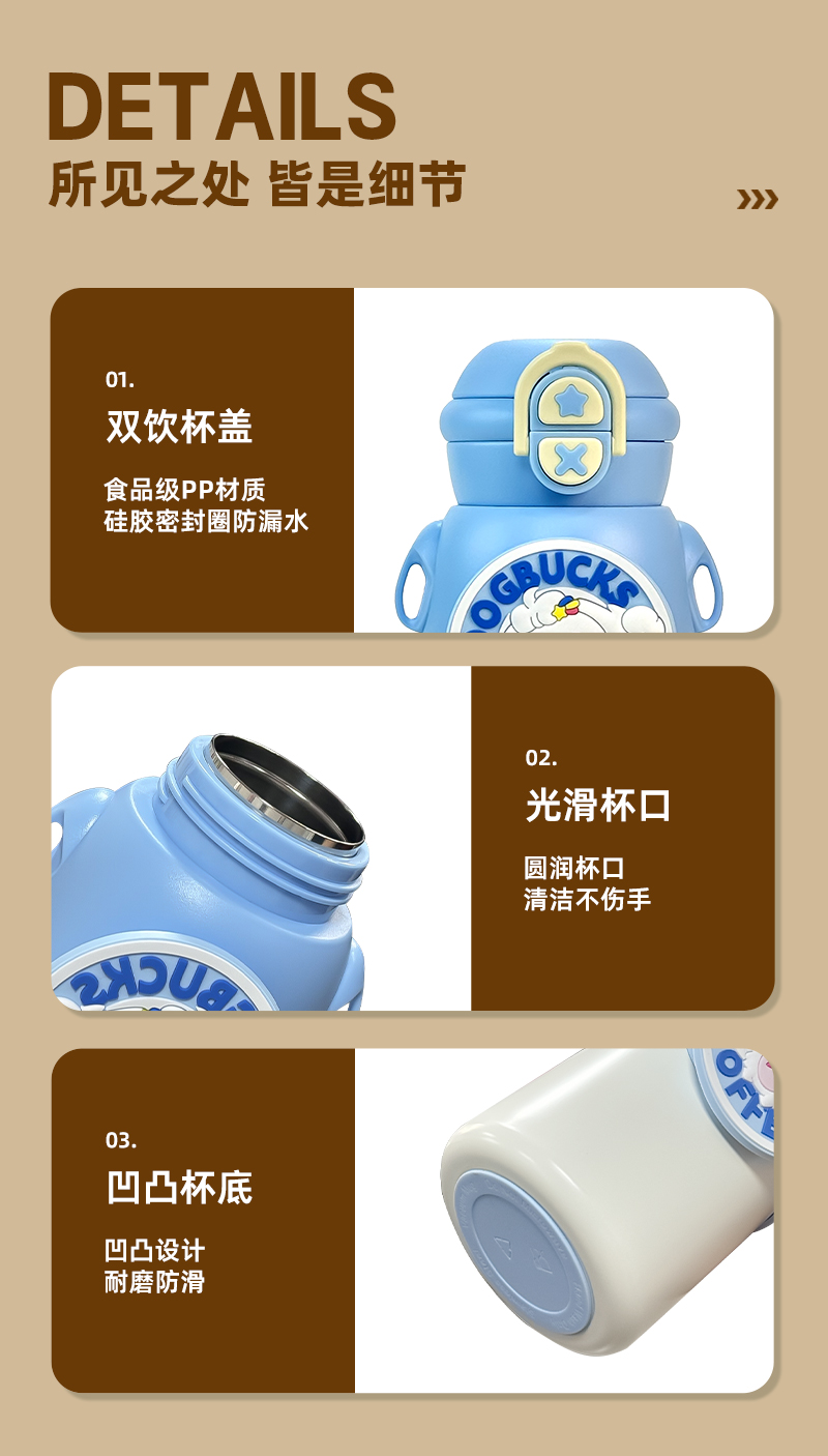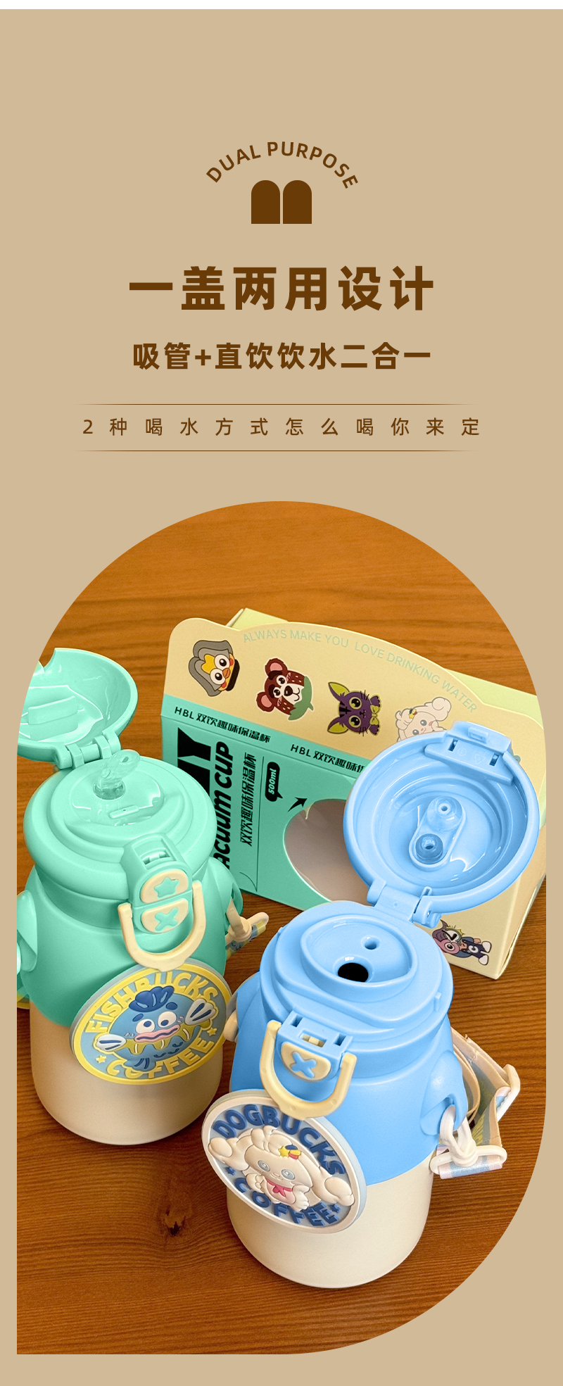 商品名称:新款高颜值卡通儿童保温杯可爱学生水杯316不锈钢便携防摔双饮吸管杯外出上学水壶