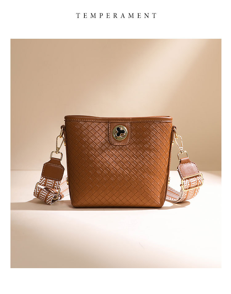 彤彤兔 包包女包编织锁扣水桶包时尚大容量单肩斜挎包