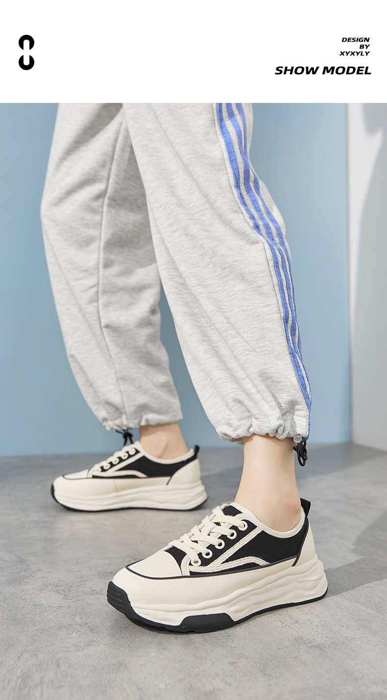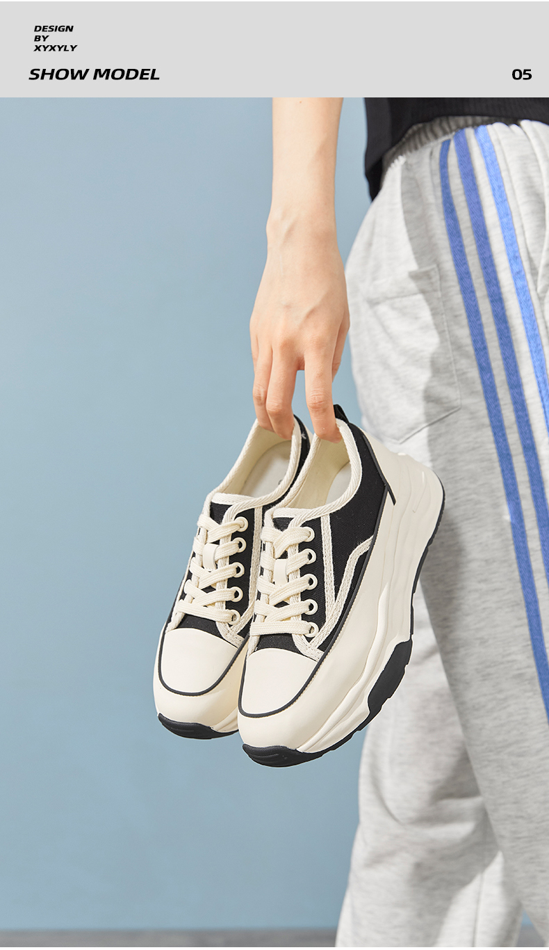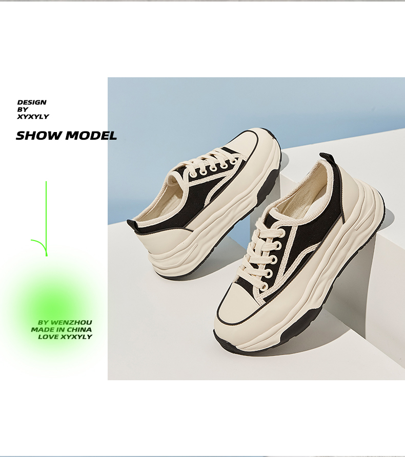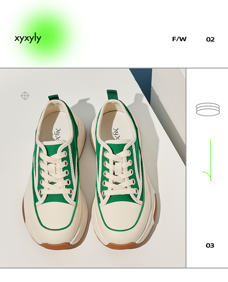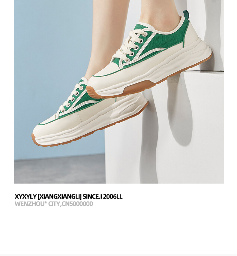 香香莉圆头系带帆布面料厚底时尚休闲鞋子青春洋溢绿色厚底增高休闲鞋