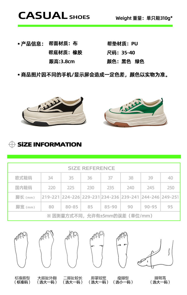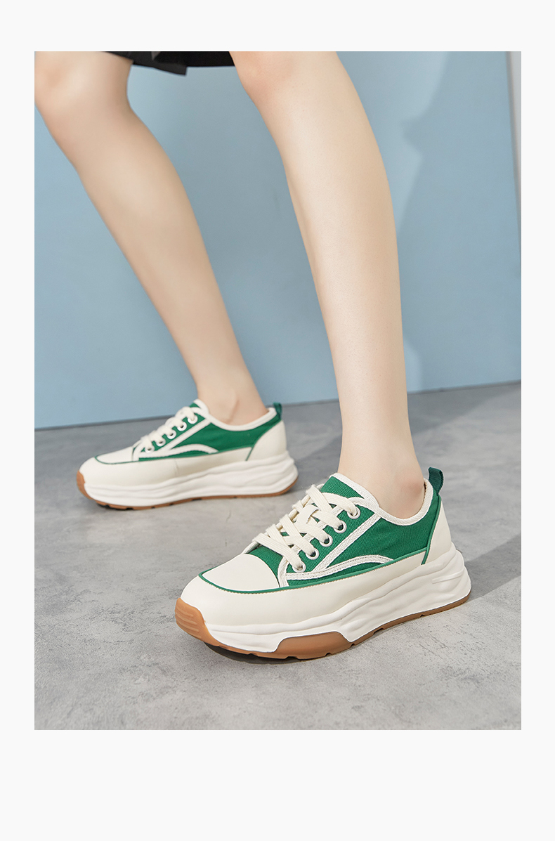 商品名称:香香莉圆头系带帆布面料厚底时尚休闲鞋子青春洋溢绿色厚底增高休闲鞋