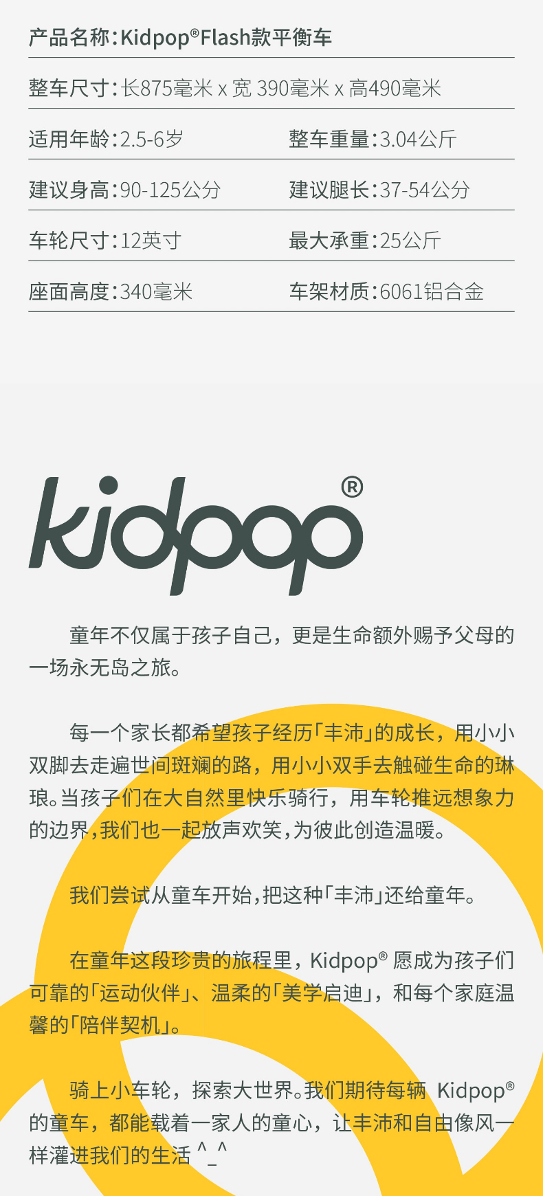商品名称:Kidpop儿童滑行平衡车3-6岁户外宝宝无脚踏学步车滑步车溜溜车