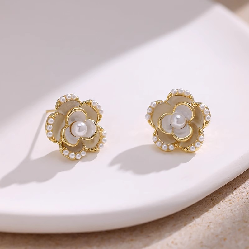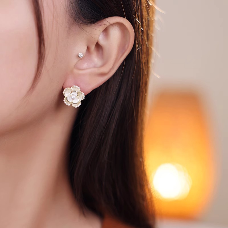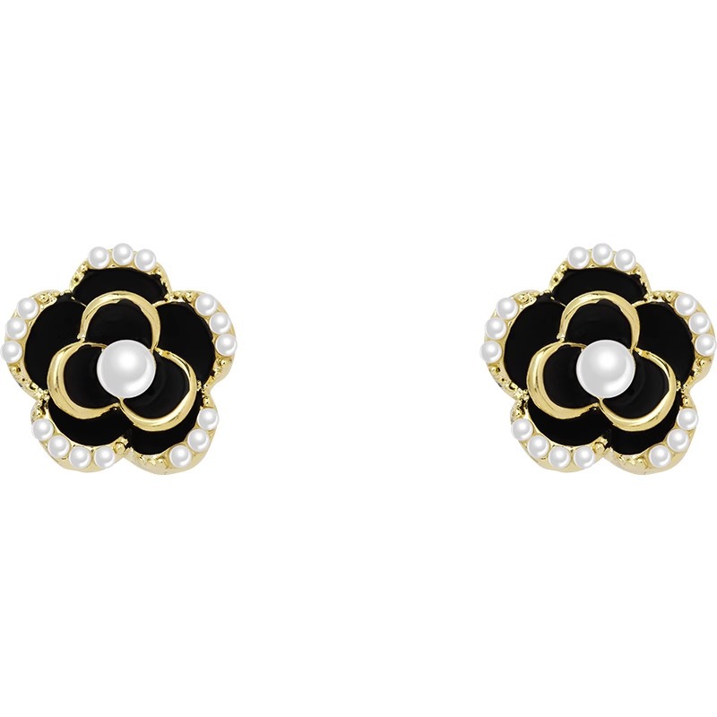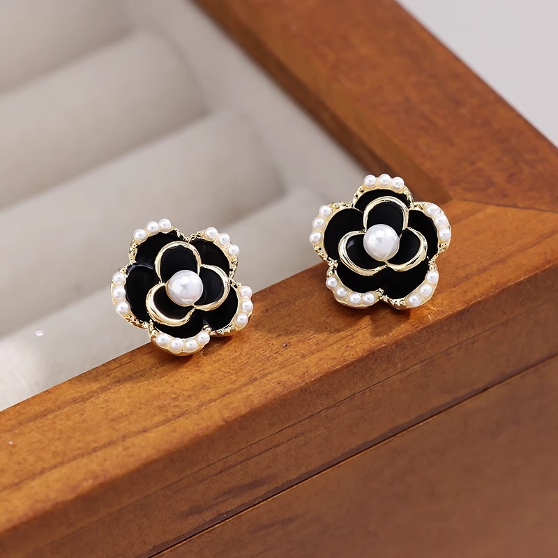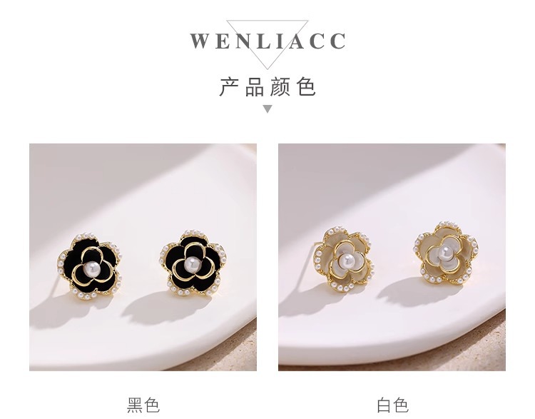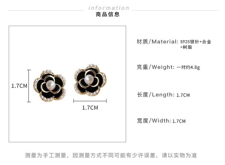 商品名称:彤彤兔 S925银针黑色山茶花耳钉女小众高级设计感简约珍珠耳环法式耳饰品