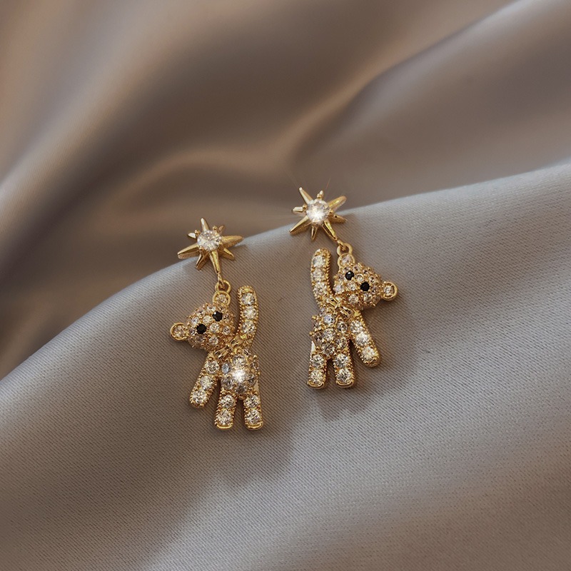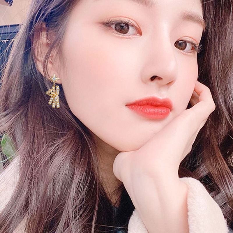 彤彤兔 S925银针韩版甜美可爱小熊简约气质小众个性耳钉女网红款耳环