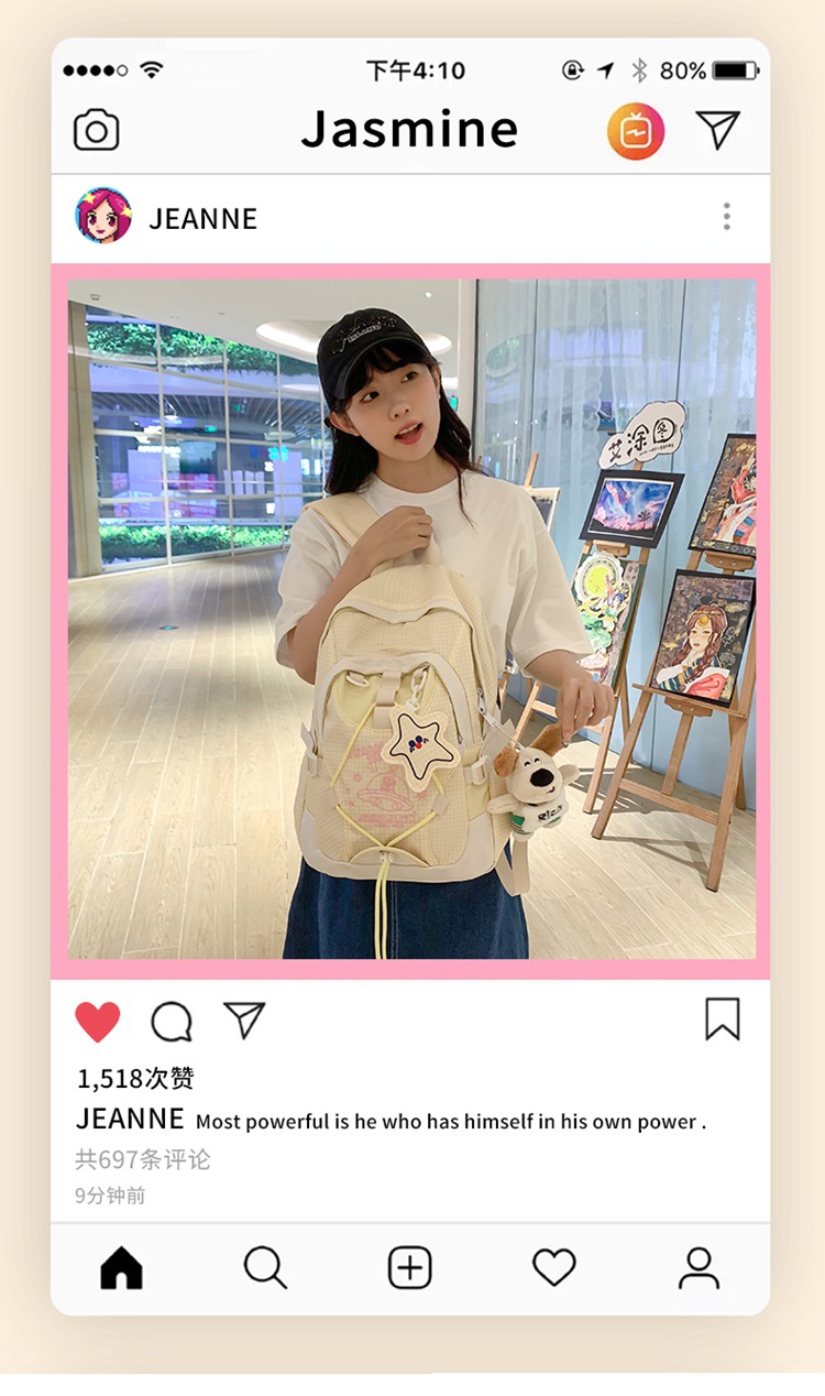 商品名称:彤彤兔 ins背包女生大容量小众设计感双肩包旅行包日系高颜值校园大学生书包