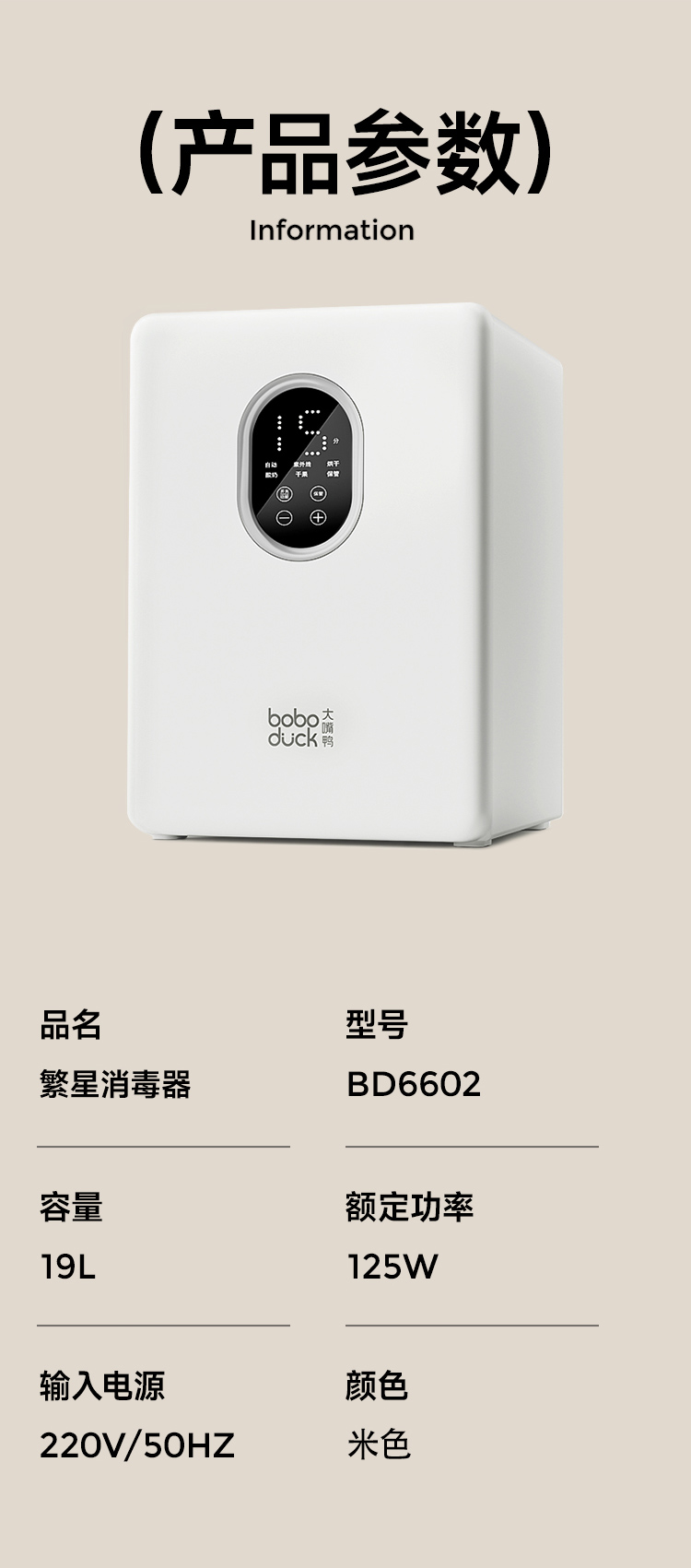 商品名称:boboduck大嘴鸭奶瓶消毒柜婴儿宝宝专用紫外线消毒器烘干一体家用BD6602
