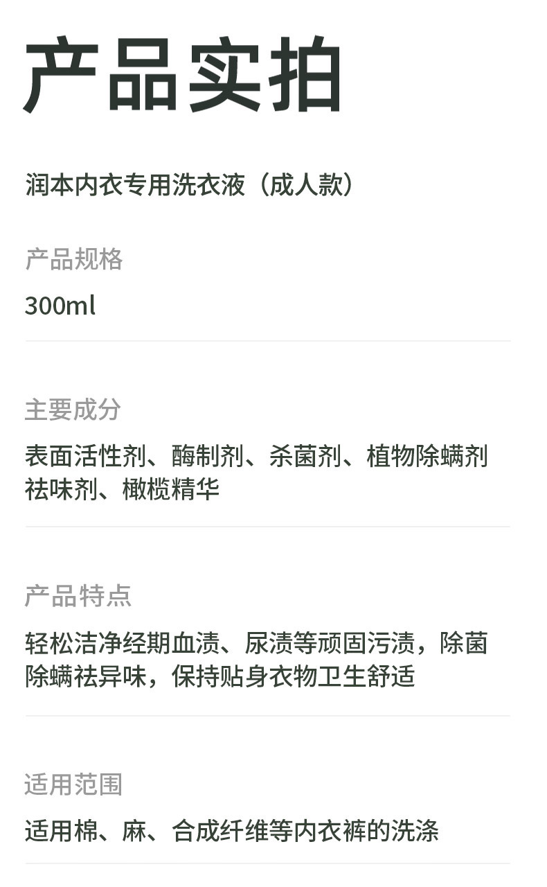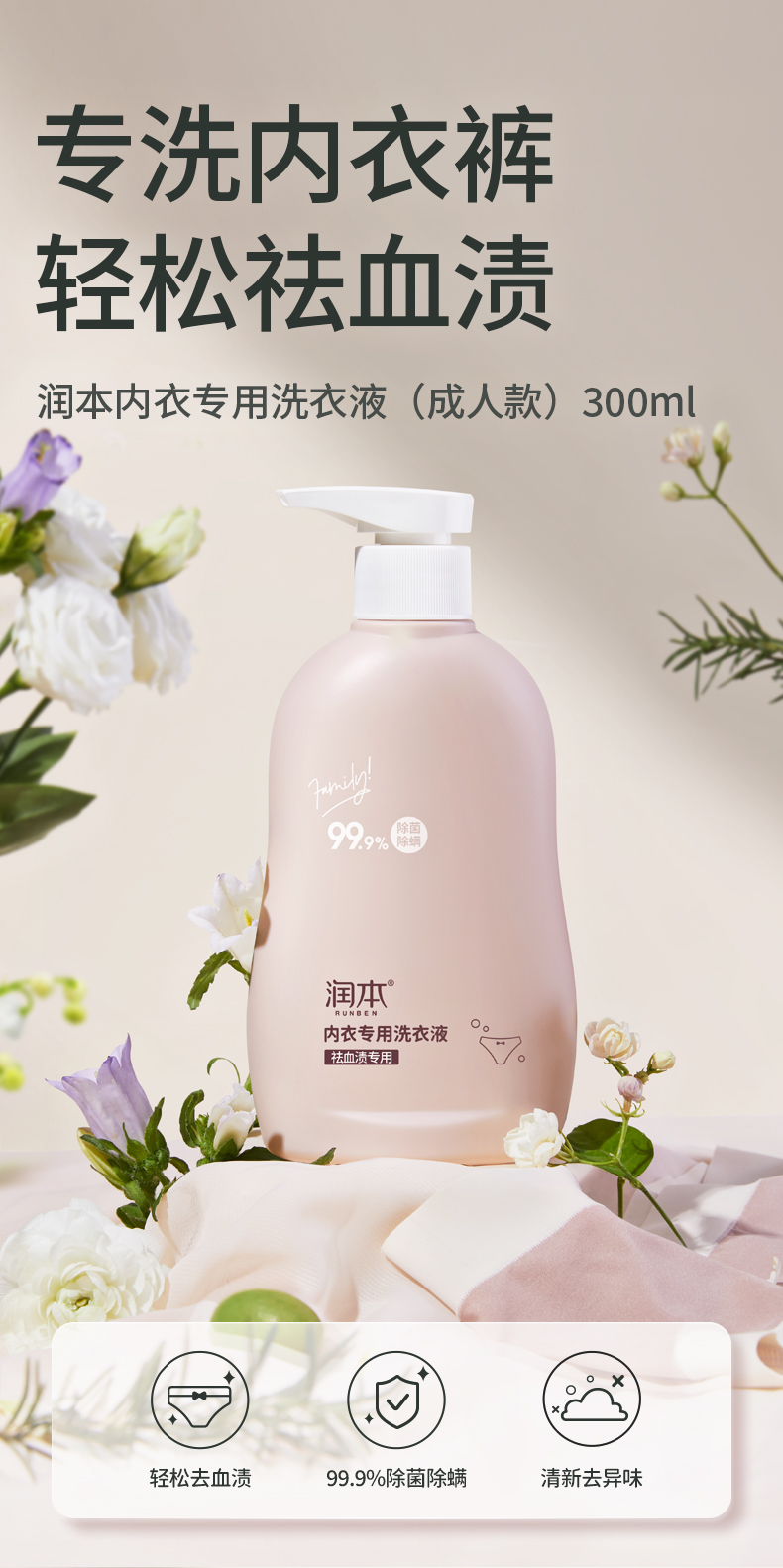 商品名称:润本内衣内裤专用清洗液儿童去污洗衣液女士专用液抑菌除菌杀菌去渍祛味