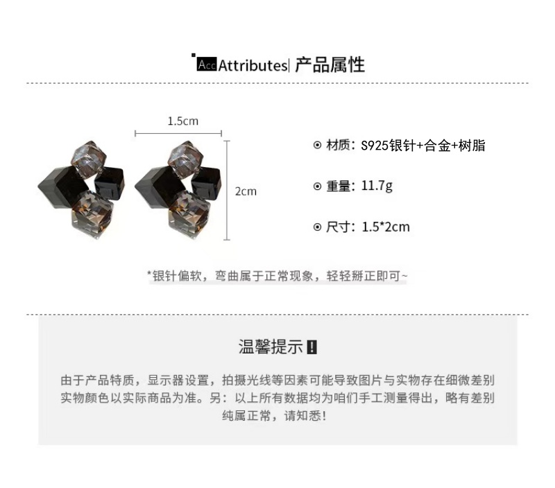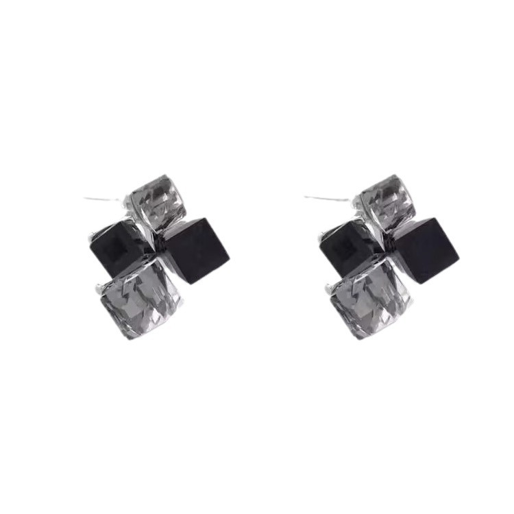 商品名称:彤彤兔 S925银针复古风秋冬黑色立体钻几何耳环高级感小众设计潮人耳钉女
