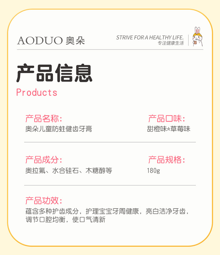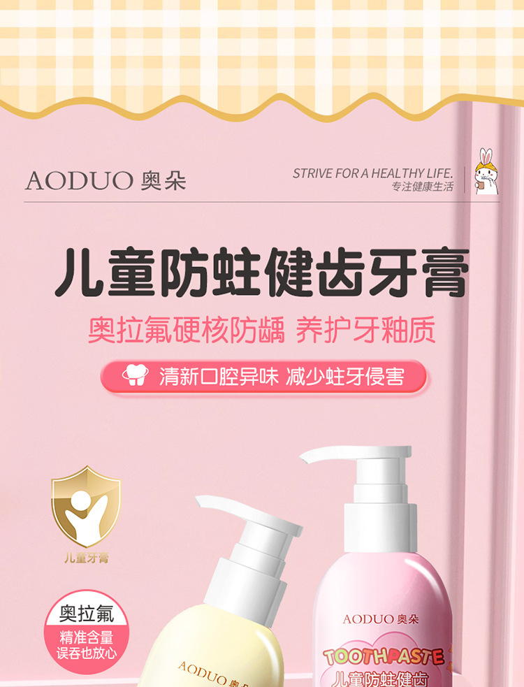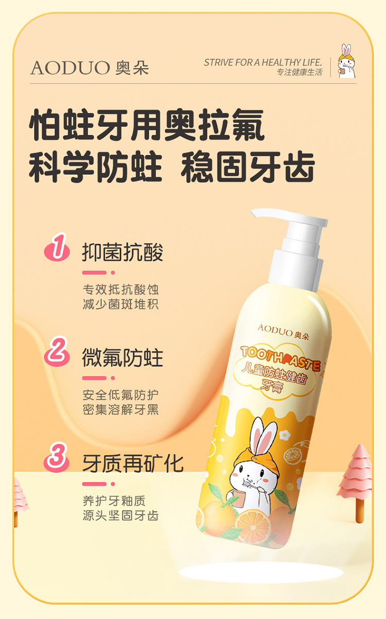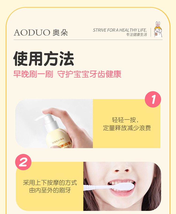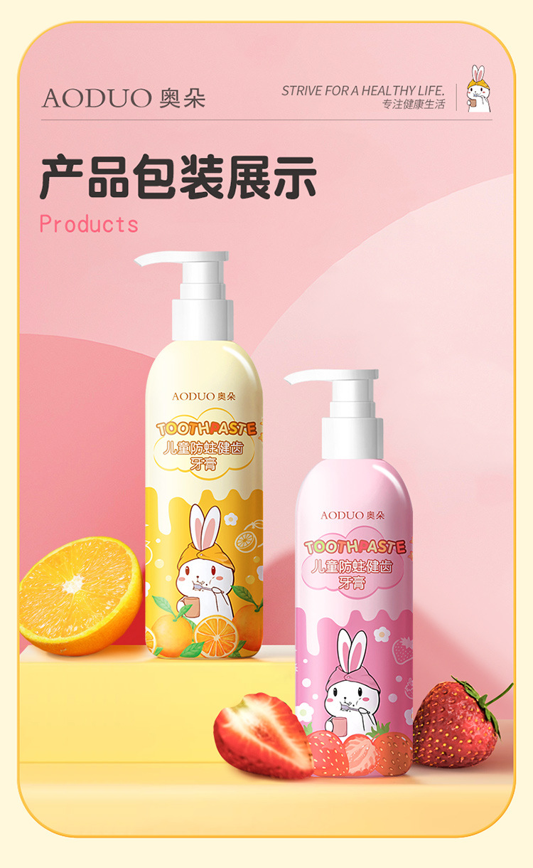 商品名称:【品牌直供】奥朵180g儿童健齿牙膏按压式婴幼儿牙膏宝宝健齿护龈护牙期果味