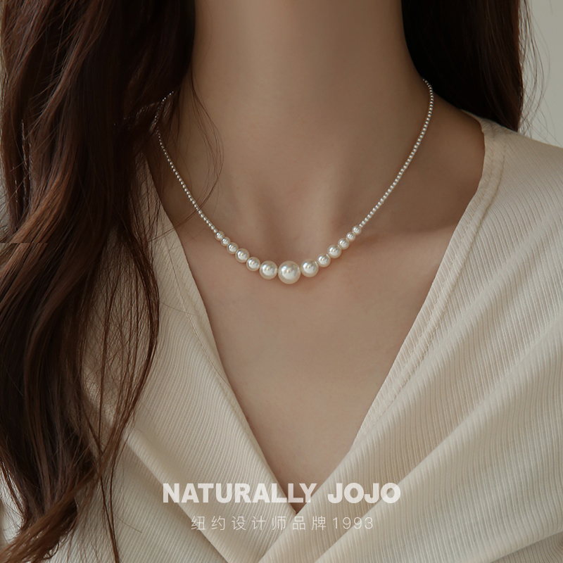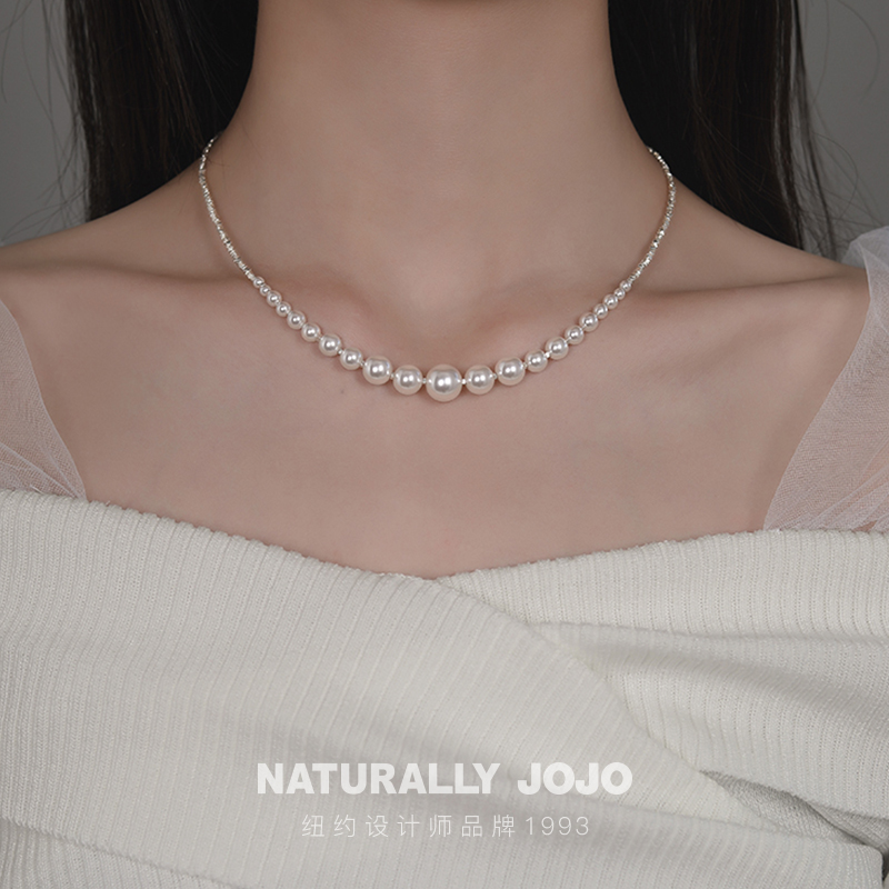 NATURALLY JOJO女士S925纯银微笑珍珠项链女轻奢小众设计高级感锁骨链2024新款爆款气质饰品