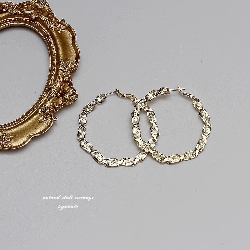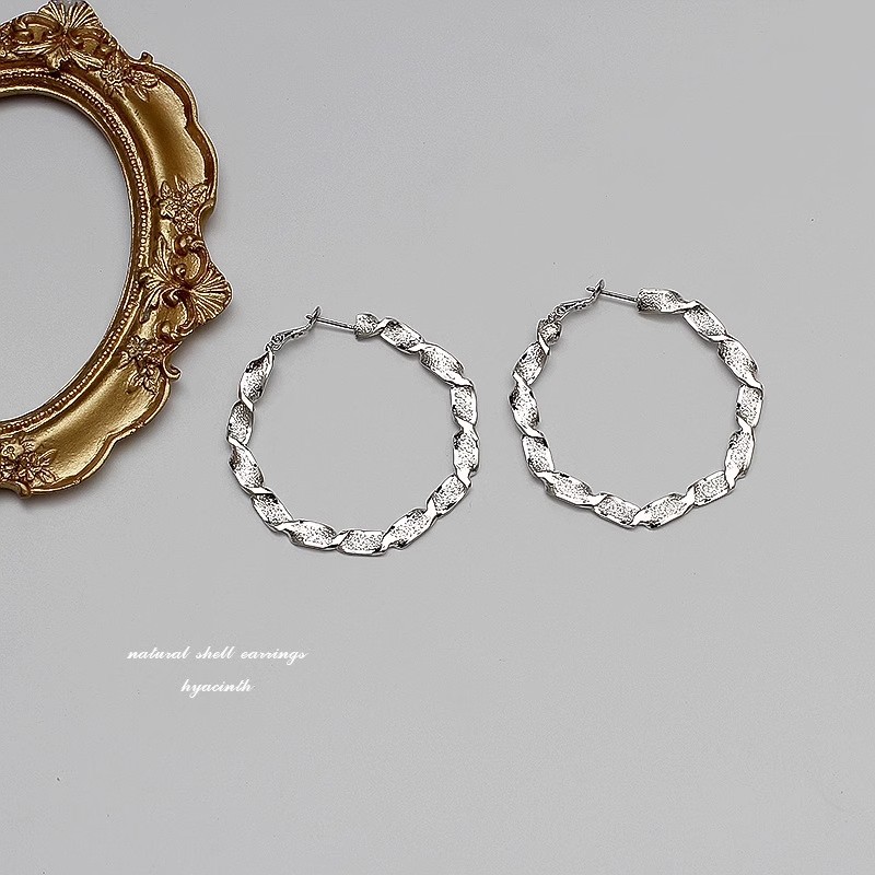 彤彤兔 S925银针欧美金属圆圈耳钉扭曲镂空耳环女韩国个性夸张耳坠耳饰品