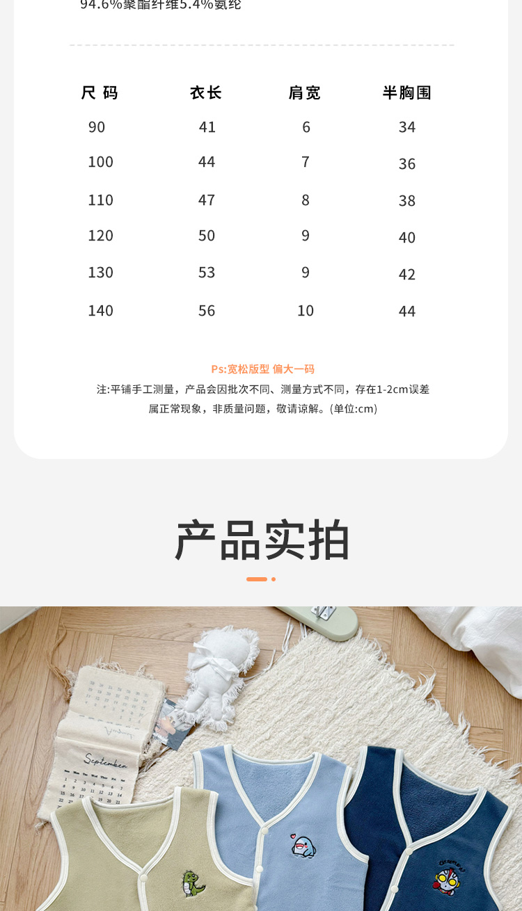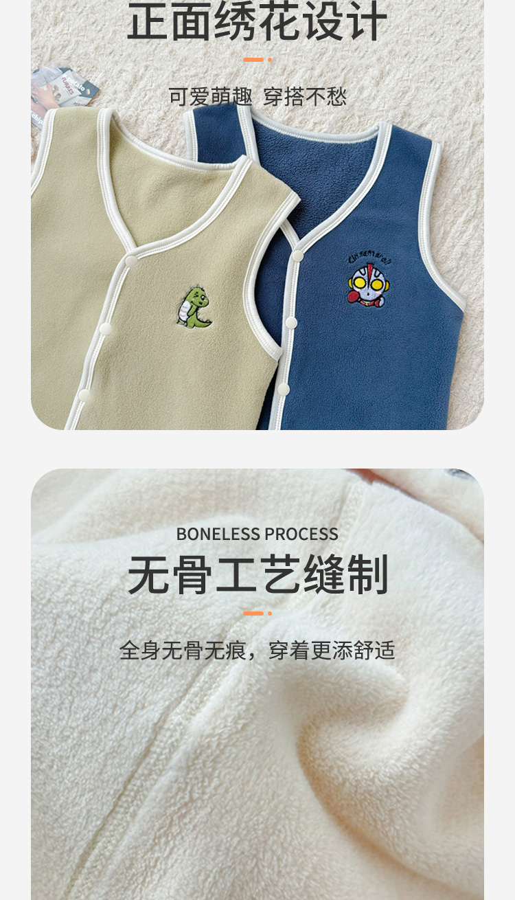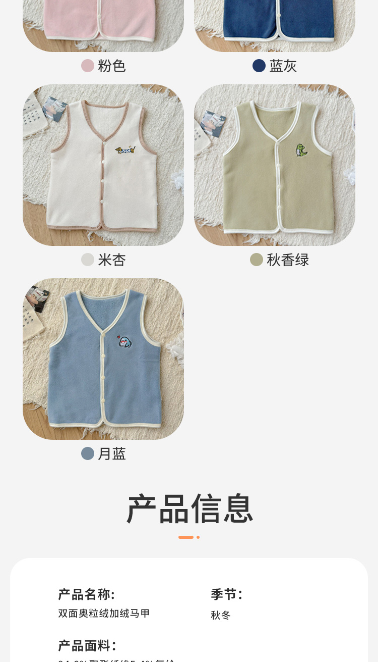 商品名称:哈萌熊童装儿童冬季新款奥利绒马甲男童秋冬加绒背心双面绒女童保暖上衣冬装