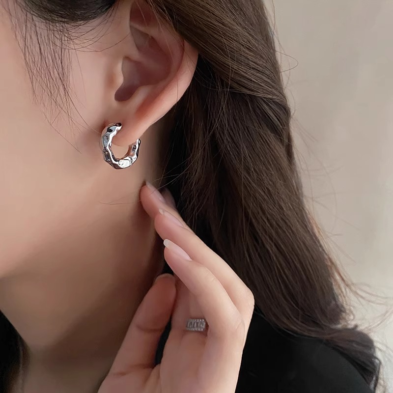 彤彤兔 金属肌理质感耳环女欧美小众设计复古耳圈简约高级设计感耳钉耳饰