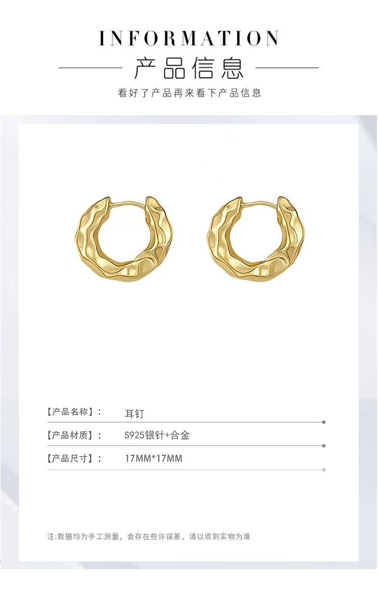 商品名称:彤彤兔 金属肌理质感耳环女欧美小众设计复古耳圈简约高级设计感耳钉耳饰