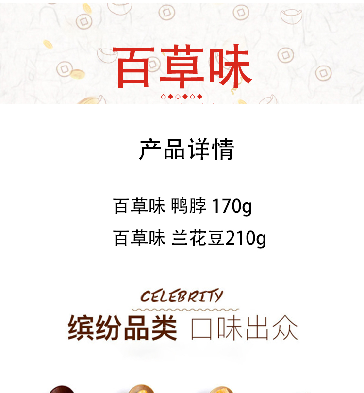 商品名称:百草味坚果零食组合380g鸭脖兰花豆零食大礼包网红下午茶休闲充饥夜宵
