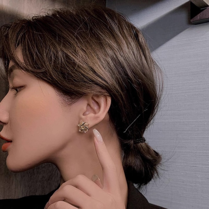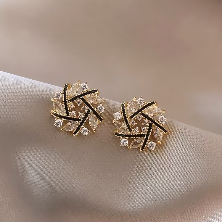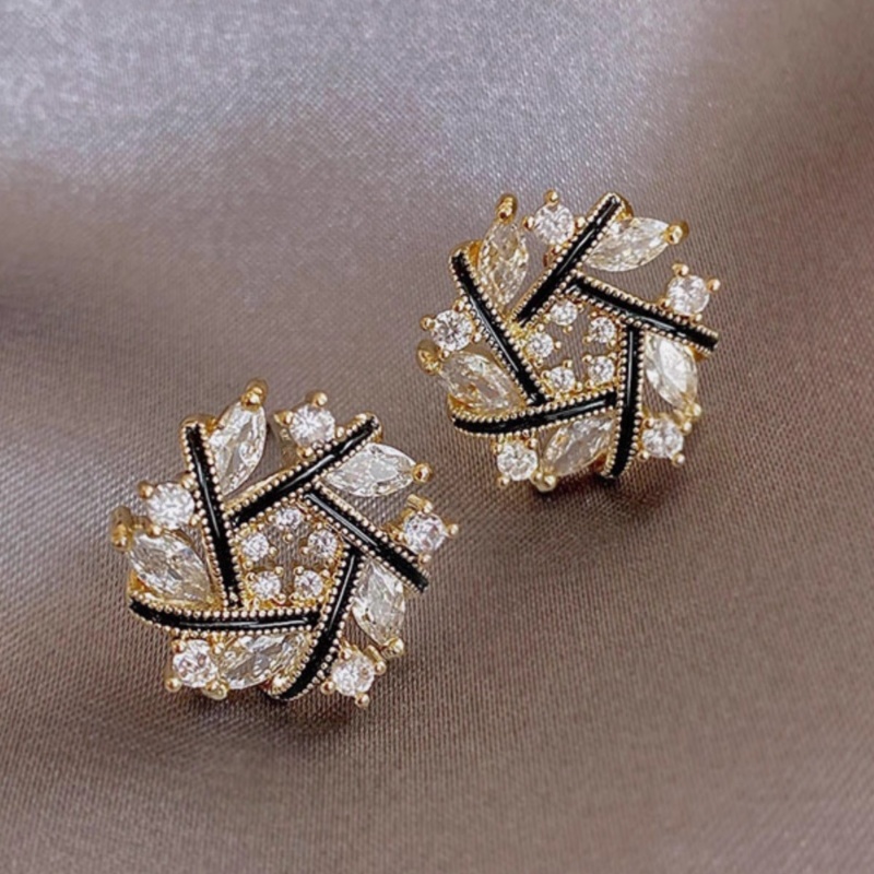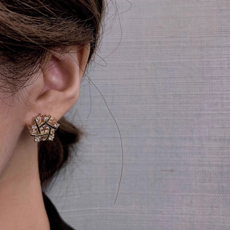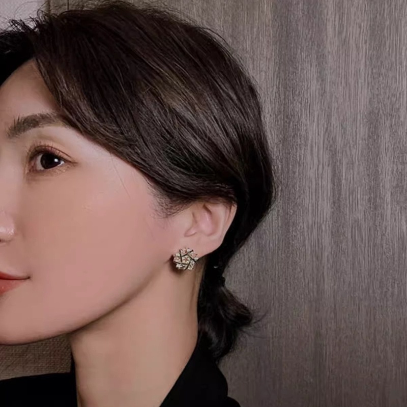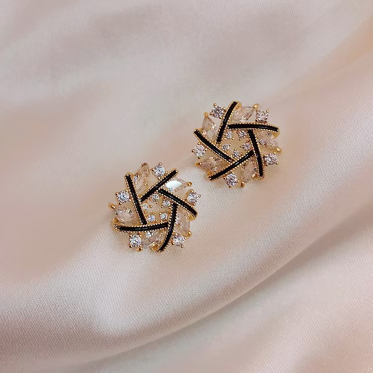 彤彤兔 S925银针交叉小花耳钉女韩国气质简约花朵耳环个性高级感百搭耳饰