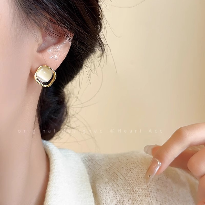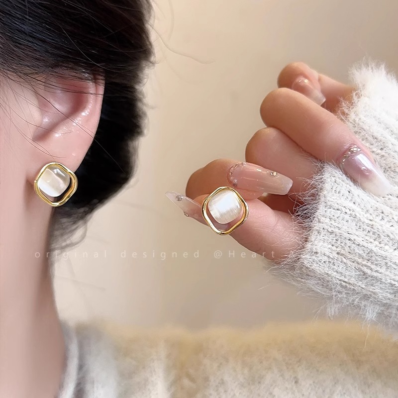 彤彤兔 S925银针方形猫眼石耳钉爆款耳环高级感冷淡风气质耳饰