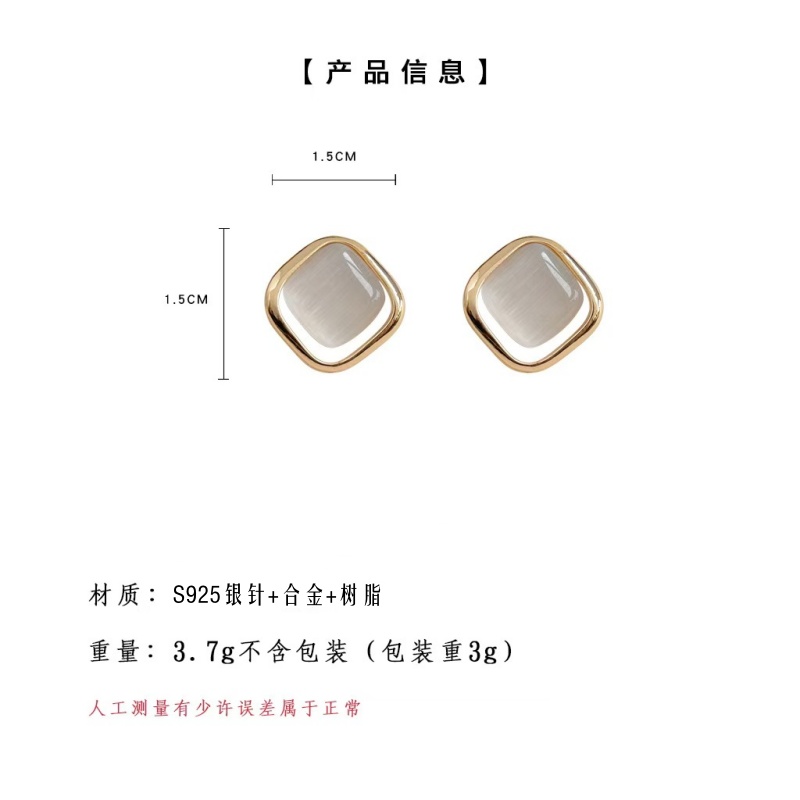 商品名称:彤彤兔 S925银针方形猫眼石耳钉爆款耳环高级感冷淡风气质耳饰