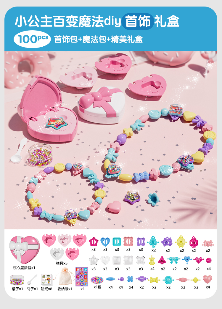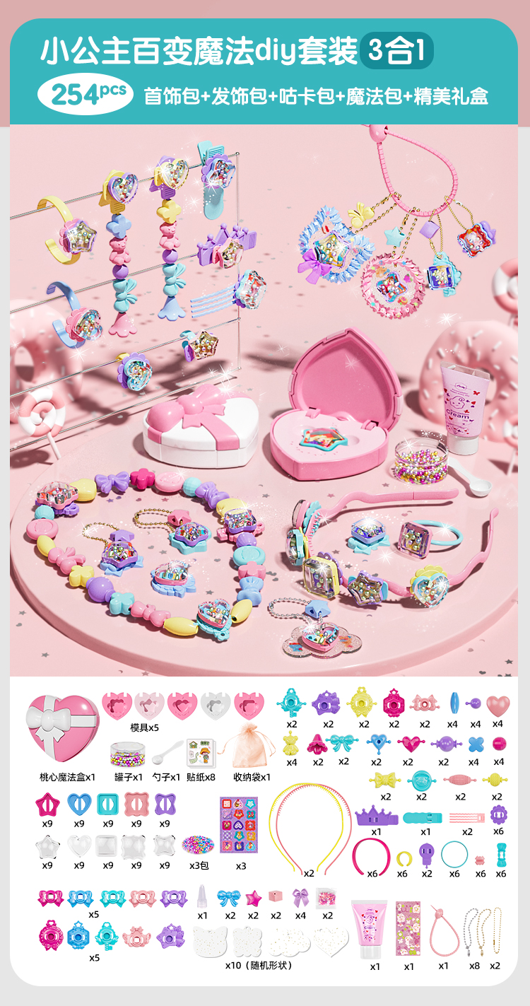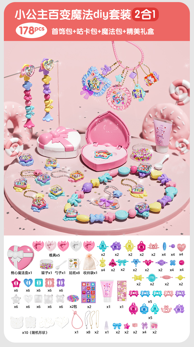 【二合一】小公主的百变魔法diy首饰咕卡二合一礼盒178pcs