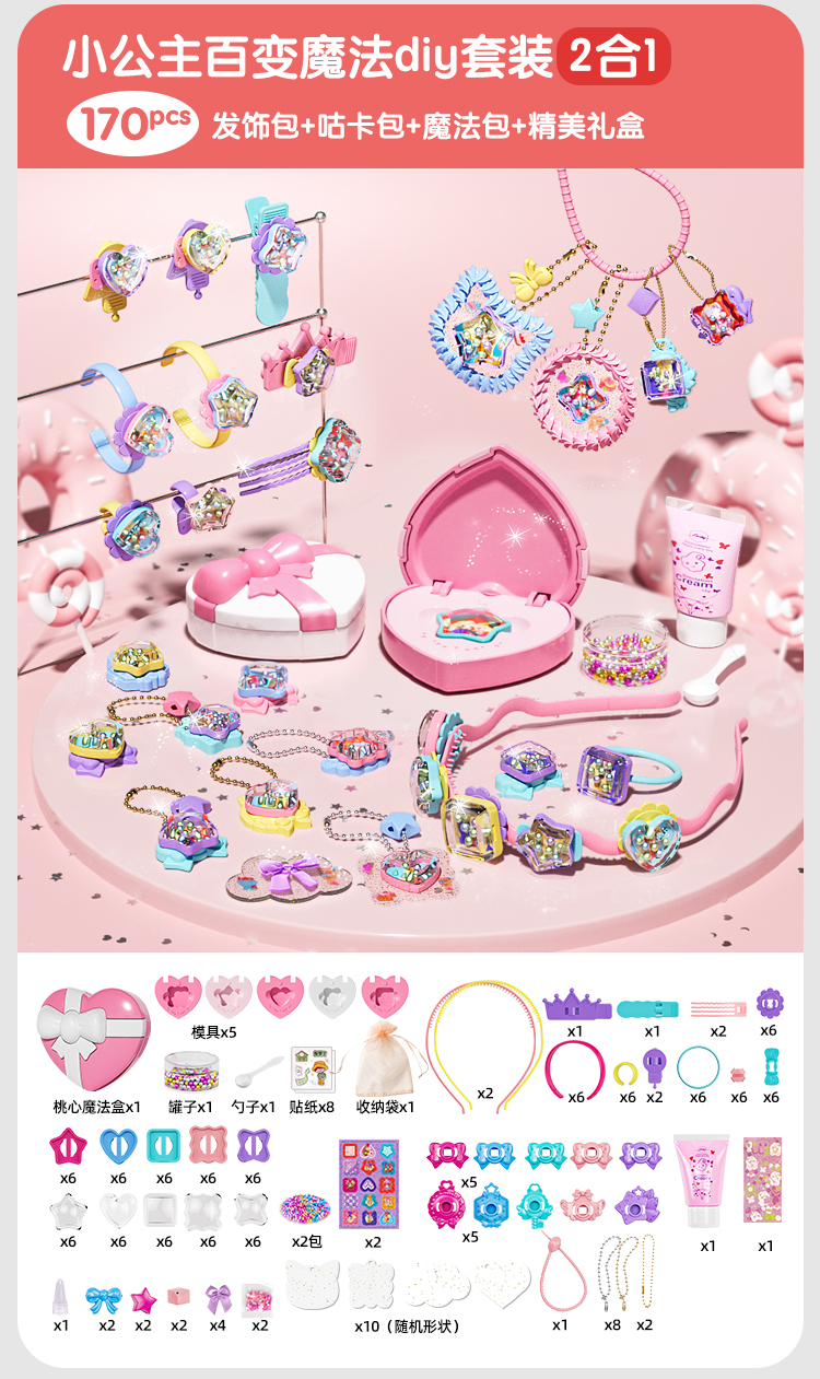 【二合一】小公主的百变魔法diy发饰咕卡二合一礼盒170pcs